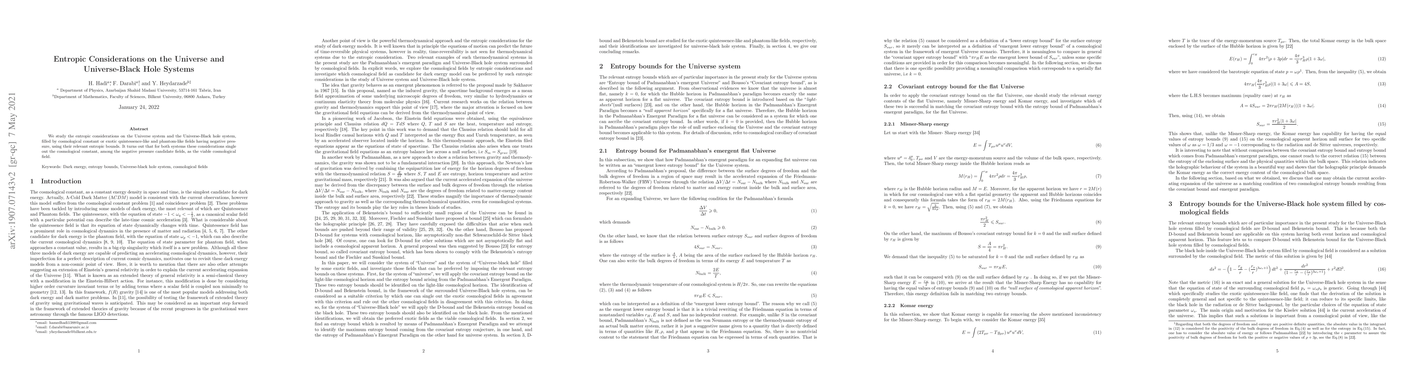 We study the entropic considerations on the Universe system and the Universe-Black hole system, filled by cosmological constant or exotic quintessence-like and phantom-like fields having negative pressure, using their relevant entropic bounds. It turns out that for both systems these considerations single out the cosmological constant, among the negative pressure candidate fields, as the viable cosmological field.