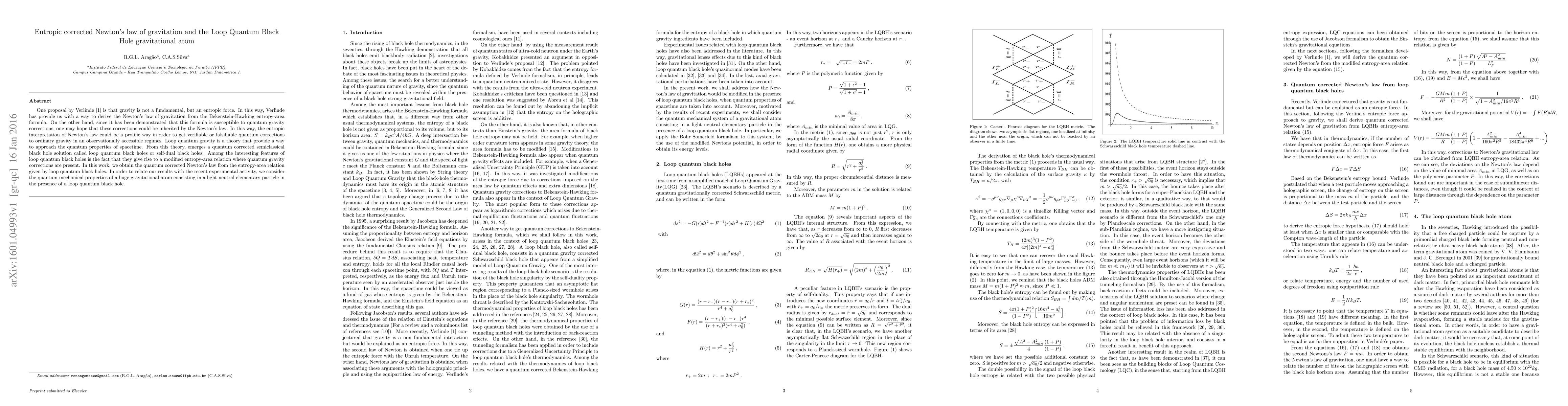 This paper derives an entropic corrected version of Newton's law of gravitation from the entropy-area relation provided by loop quantum black holes, incorporating quantum gravity corrections. It also explores the quantum mechanical properties of a gravitational atom near such a black hole to relate theoretical findings to potential experimental observations.