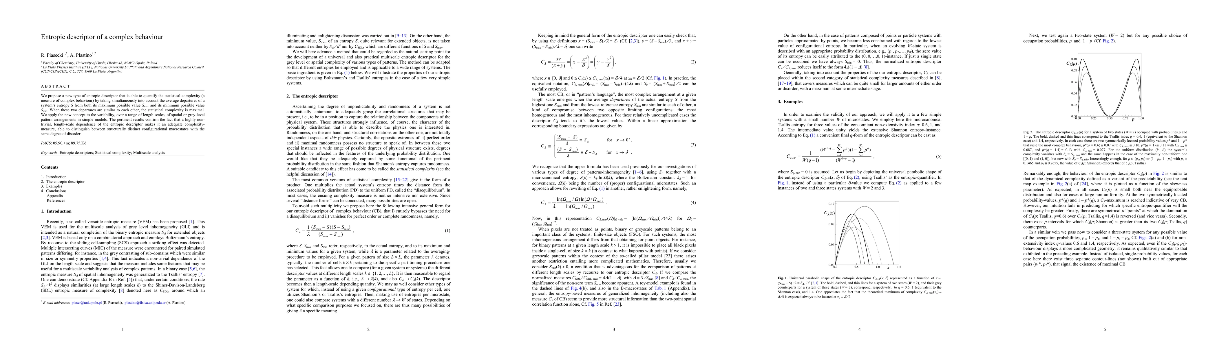 A new entropic descriptor measures complex behavior by comparing average entropy deviations from maximum and minimum values, distinguishing between structurally distinct states with similar disorder.