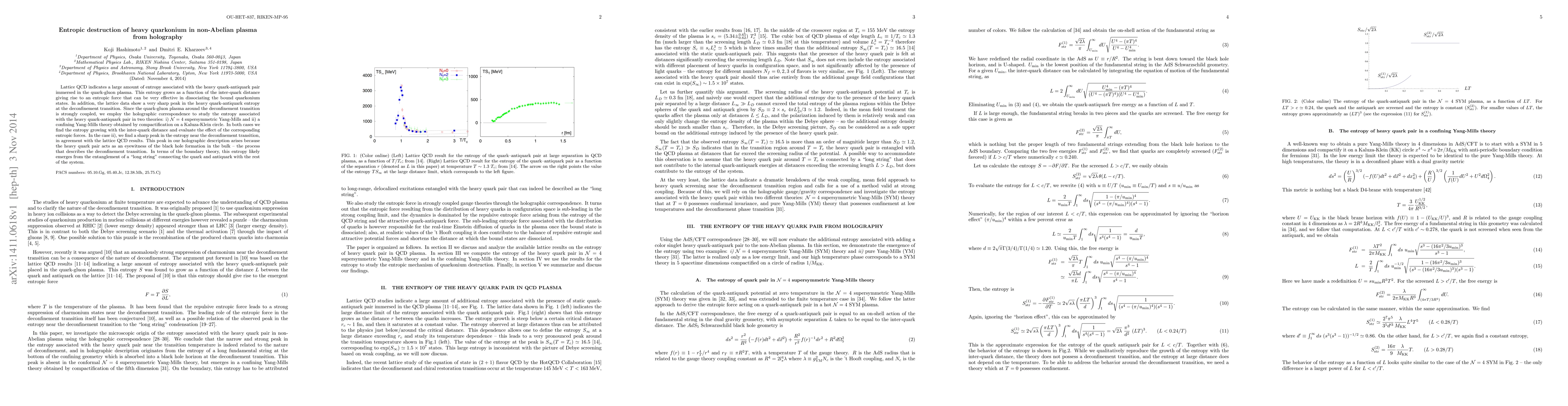 Lattice QCD indicates a large amount of entropy associated with the heavy quark-antiquark pair immersed in the quark-gluon plasma. This entropy grows as a function of the inter-quark distance giving rise to an entropic force that can be very effective in dissociating the bound quarkonium states. In addition, the lattice data show a very sharp peak in the heavy quark-antiquark entropy at the deconfinement transition. Since the quark-gluon plasma around the deconfinement transition is strongly coupled, we employ the holographic correspondence to study the entropy associated with the heavy quark-antiquark pair in two theories: i) ${\cal{N}}=4$ supersymmetric Yang-Mills and ii) a confining Yang-Mills theory obtained by compactification on a Kaluza-Klein circle. In both cases we find the entropy growing with the inter-quark distance and evaluate the effect of the corresponding entropic forces. In the case ii), we find a sharp peak in the entropy near the deconfinement transition, in agreement with the lattice QCD results. This peak in our holographic description arises because the heavy quark pair acts as an eyewitness of the black hole formation in the bulk -- the process that describes the deconfinement transition. In terms of the boundary theory, this entropy likely emerges from the entanglement of a "long string" connecting the quark and antiquark with the rest of the system.
