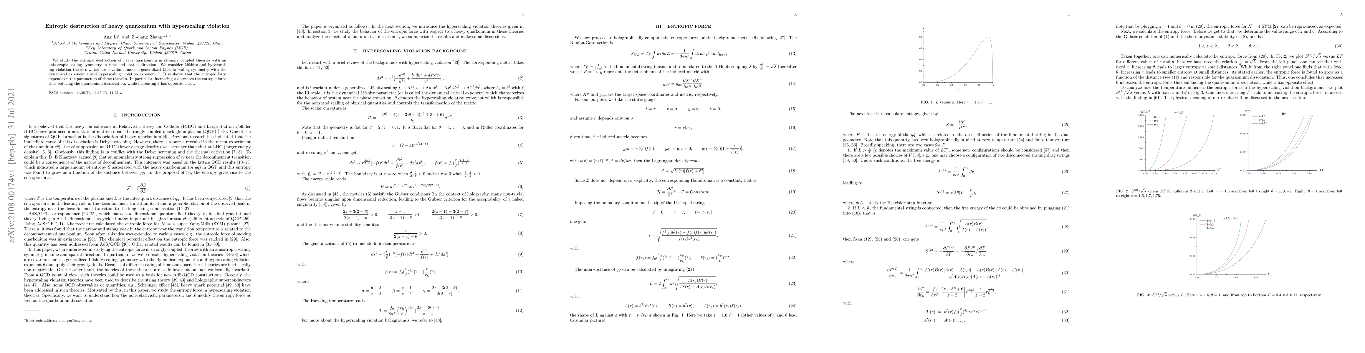 This paper investigates how entropic forces affect the stability of heavy quarkonium in strongly coupled theories with anisotropic scaling, specifically in Lifshitz and hyperscaling violation frameworks. It finds that increasing the dynamical exponent $z$ reduces entropic force and quarkonium dissociation, while increasing the hyperscaling violation exponent $\theta$ has the opposite effect.