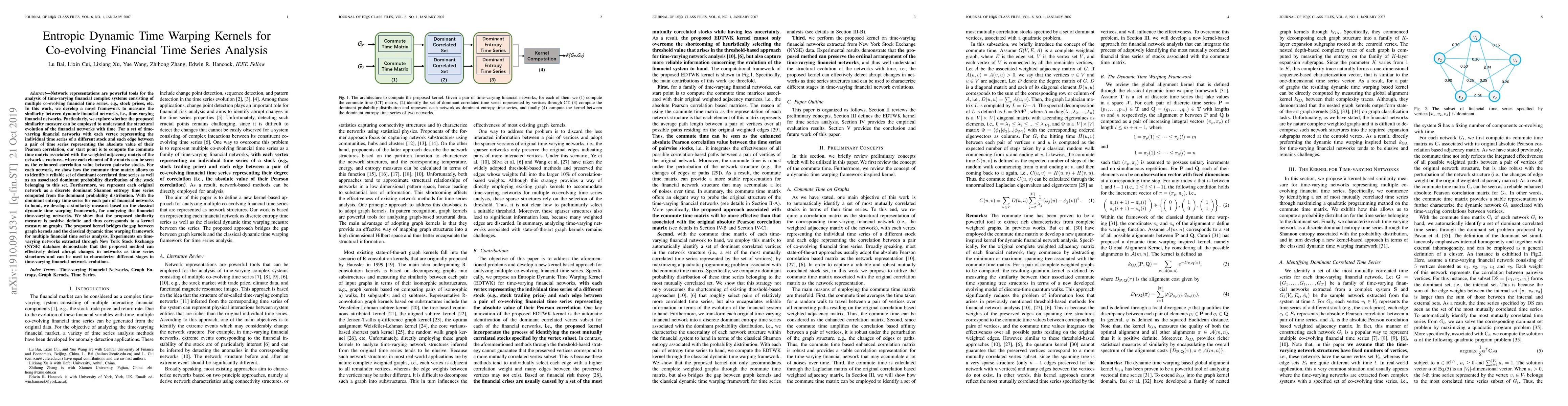 This paper introduces a novel entropic dynamic time warping kernel to measure similarity between dynamic financial networks, enabling the analysis of structural evolution over time. The proposed method uses commute time matrices and dominant Shannon entropy time series to develop a kernel measure that bridges graph kernels and dynamic time warping, validated through experiments on NYSE data.