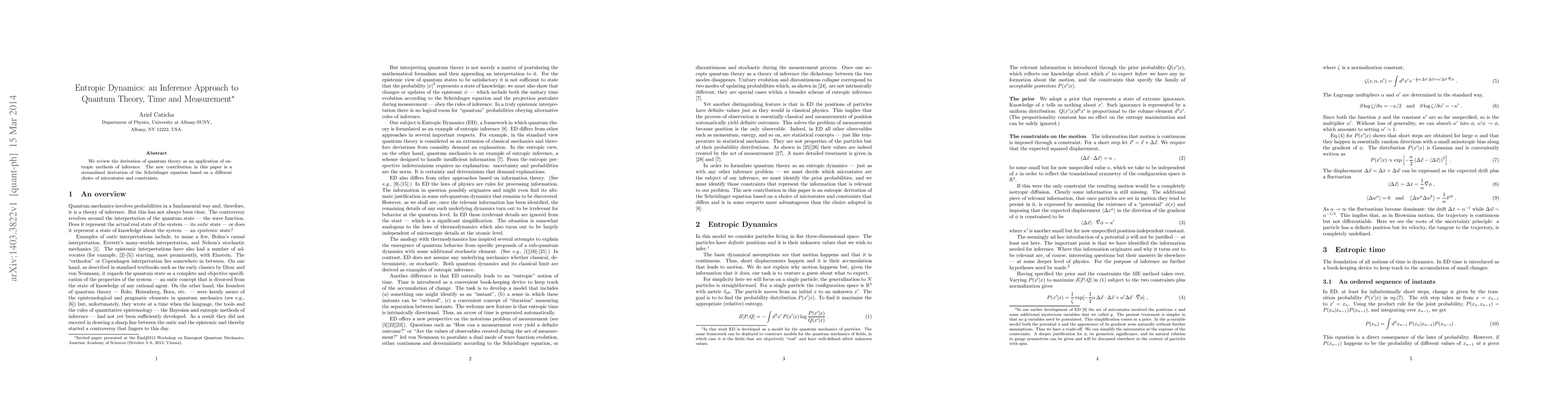 Researchers derive a new method for deriving the Schrödinger equation using entropic methods of inference, offering an alternative approach to quantum theory.