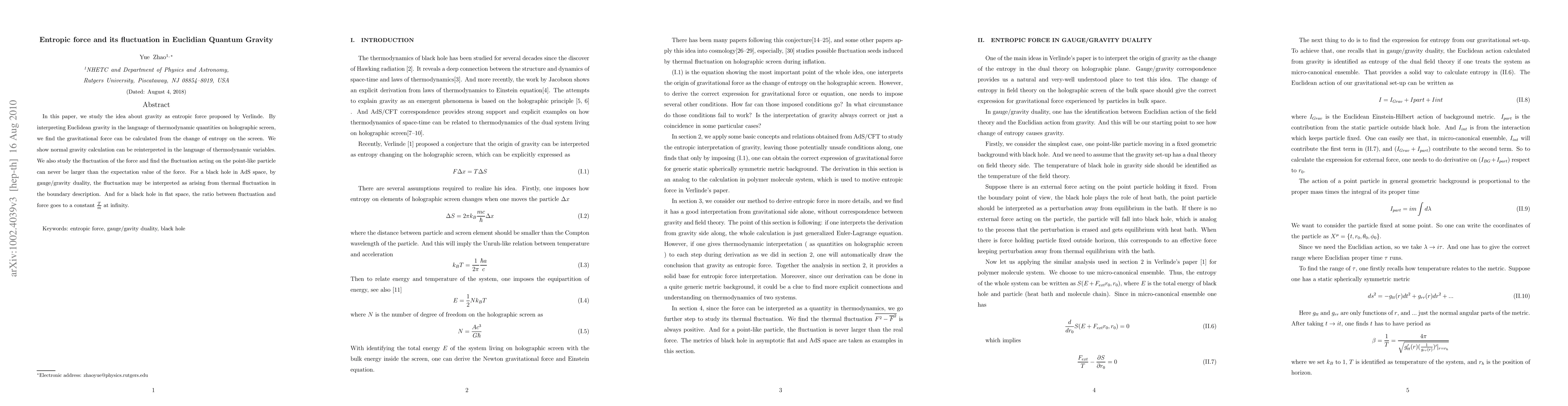 This paper explores the concept of gravity as an entropic force, demonstrating that gravitational force can be derived from the entropy changes in its dual field theory without relying on assumptions like equipartition of energy. It also investigates the fluctuation of this force, showing that it cannot exceed the expected force value and provides insights into gauge/gravity duality.