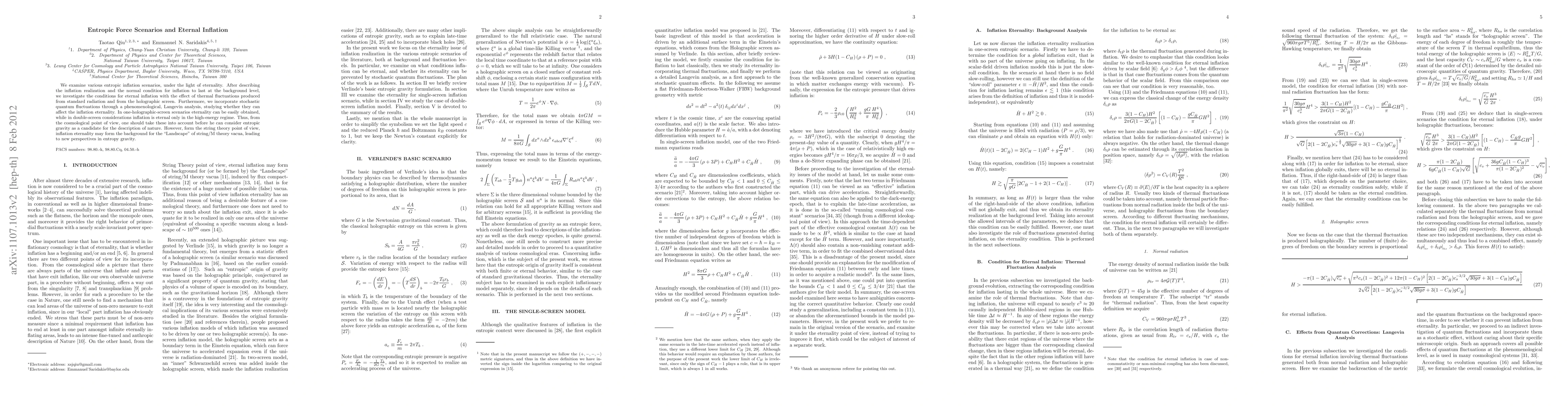 This paper explores entropic inflation scenarios in the context of eternal inflation, analyzing conditions under which inflation persists due to thermal and quantum fluctuations. It finds that while single-holographic-screen models easily achieve eternal inflation, double-screen scenarios require a high-energy regime, suggesting nuanced considerations for entropic gravity in cosmology and potential implications for string theory vacua.