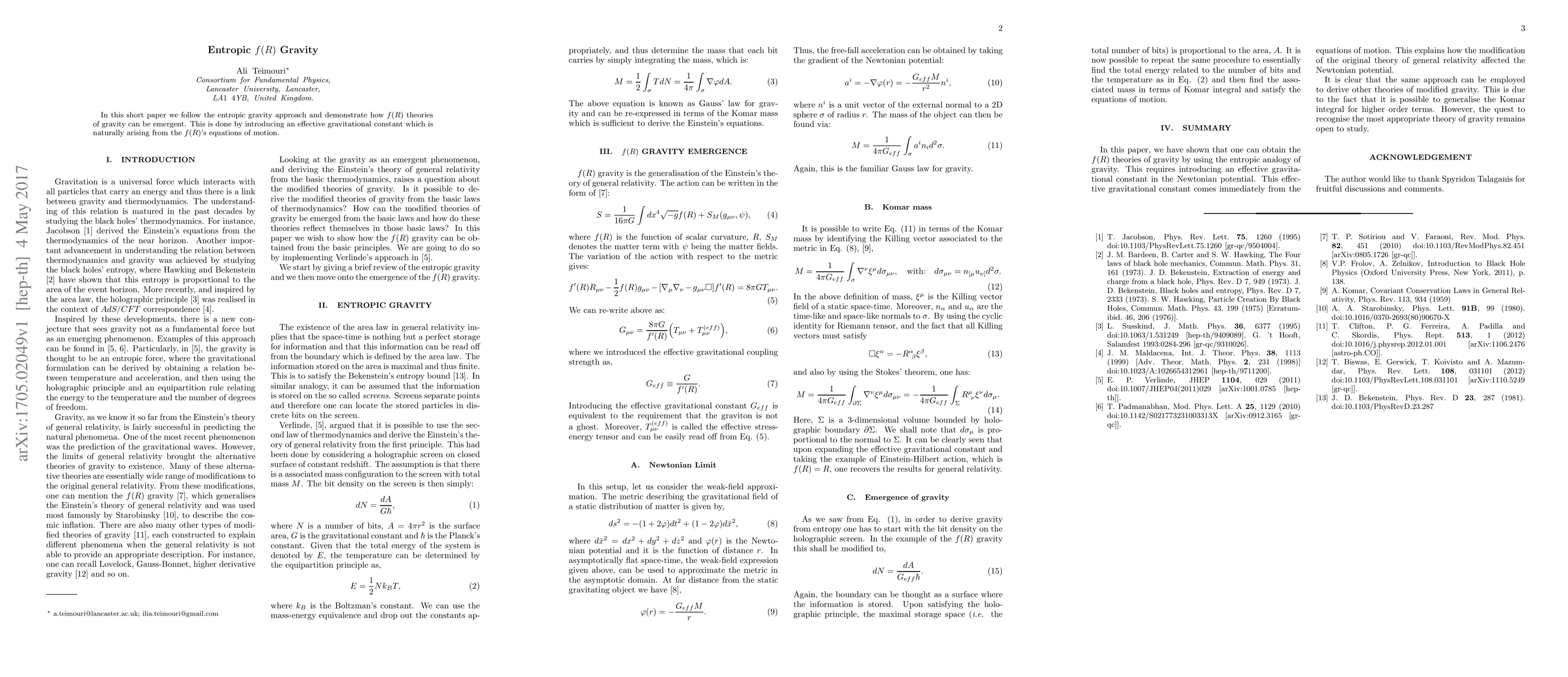 In this short paper we follow the entropic gravity approach and demonstrate how \(f(R)\) theories of gravity can be emergent. This is done by introducing an effective gravitational constant which is naturally arising from the \(f(R)\)'s equations of motion.