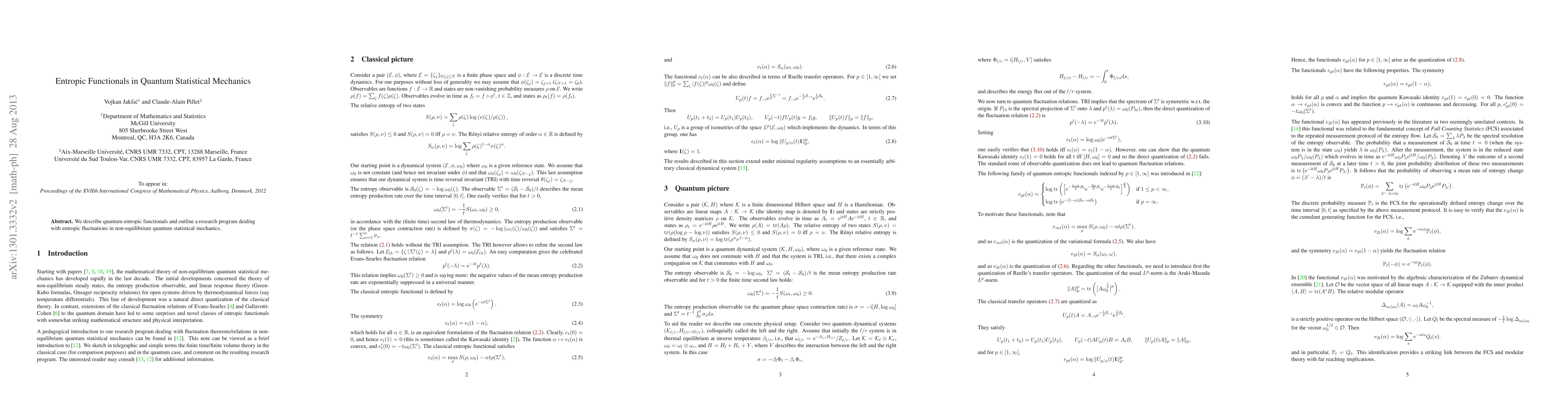 We describe quantum entropic functionals and outline a research program dealing with entropic fluctuations in non-equilibrium quantum statistical mechanics.