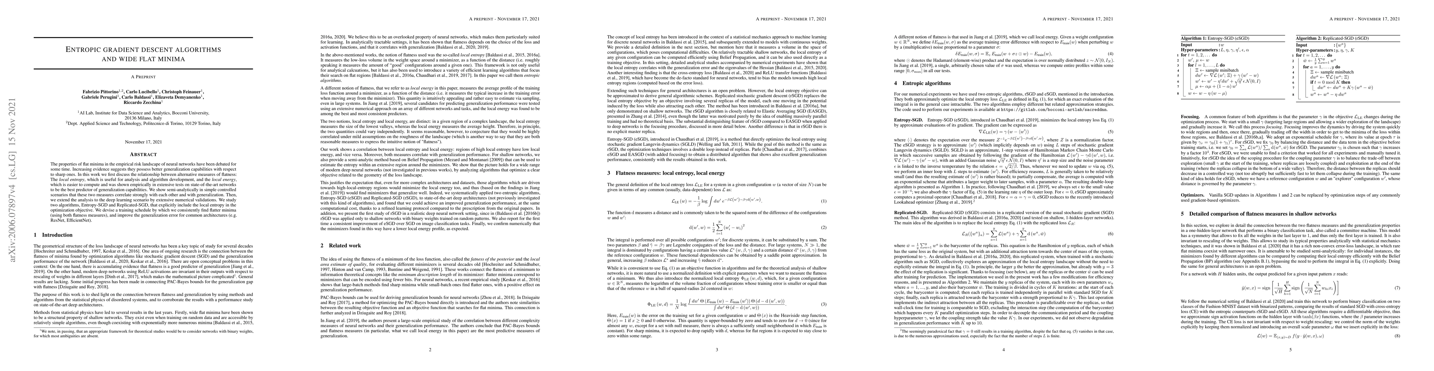 This paper explores the benefits of wide flat minima in neural networks, demonstrating that they generalize better than sharp minima. The authors propose Entropy-SGD and Replicated-SGD algorithms that incorporate a local entropy measure to optimize for flatness, showing improved generalization across various architectures through extensive numerical validation.