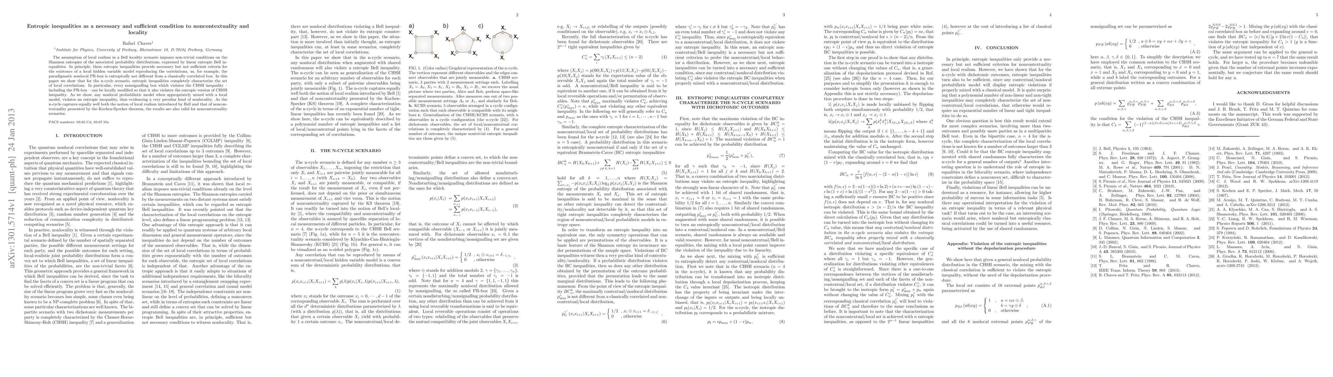 A recent study shows that entropic inequalities completely characterize local correlations in Bell locality scenarios, making them necessary and sufficient conditions for noncontextuality and locality. This finding provides a new perspective on the nature of quantum mechanics and its relationship to realism.