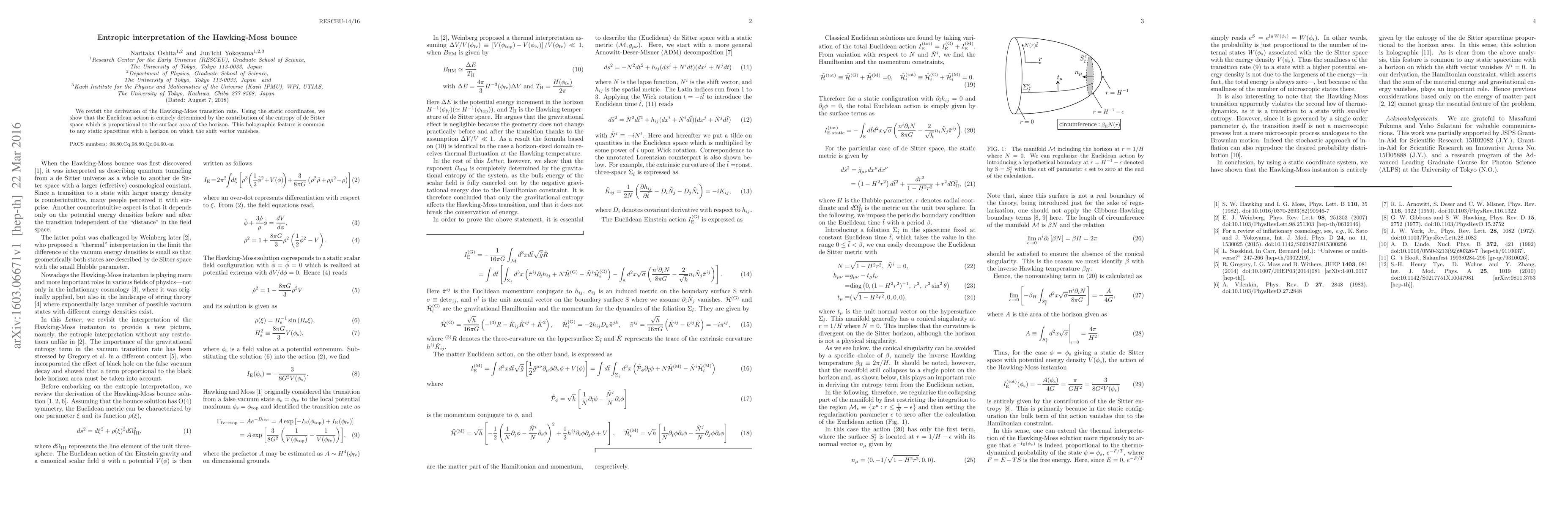 The Hawking-Moss bounce transition rate is determined solely by the entropy of de Sitter space, which relates to the surface area of the horizon, a feature common to static spacetimes with vanishing shift vectors.