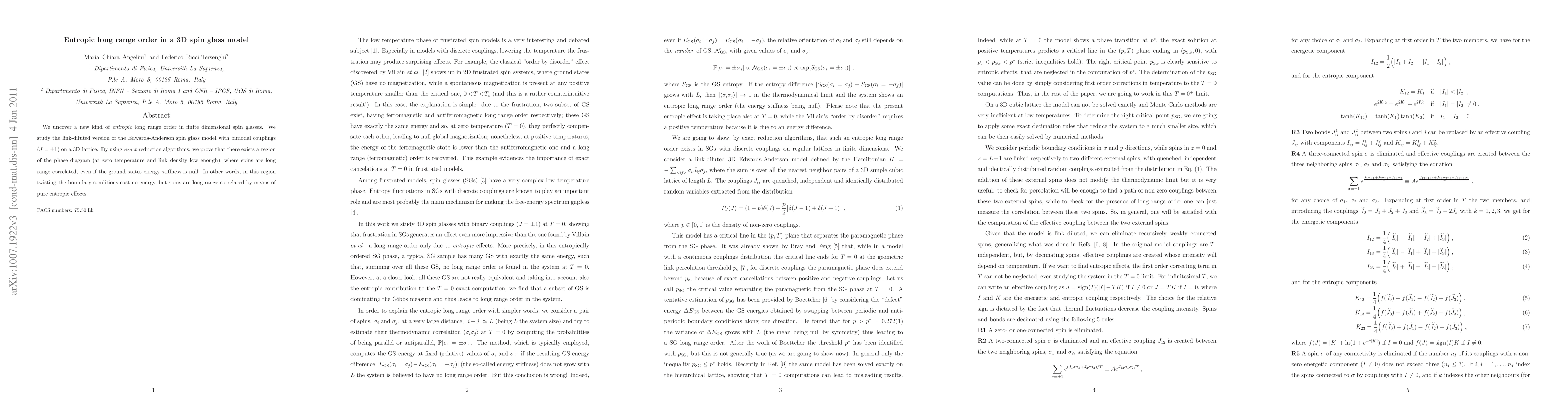 Researchers discovered a new phenomenon in 3D spin glasses where spins become long-range correlated even when the ground state energy is at zero stiffness, driven solely by entropic effects.