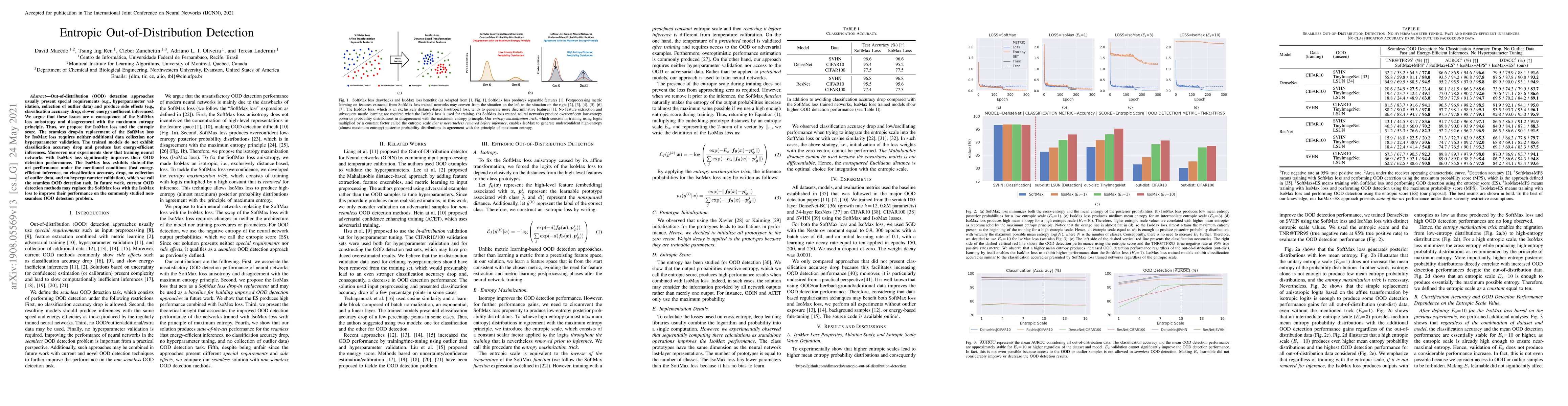 Out-of-distribution (OOD) detection approaches usually present special requirements (e.g., hyperparameter validation, collection of outlier data) and produce side effects (e.g., classification accuracy drop, slower energy-inefficient inferences). We argue that these issues are a consequence of the SoftMax loss anisotropy and disagreement with the maximum entropy principle. Thus, we propose the IsoMax loss and the entropic score. The seamless drop-in replacement of the SoftMax loss by IsoMax loss requires neither additional data collection nor hyperparameter validation. The trained models do not exhibit classification accuracy drop and produce fast energy-efficient inferences. Moreover, our experiments show that training neural networks with IsoMax loss significantly improves their OOD detection performance. The IsoMax loss exhibits state-of-the-art performance under the mentioned conditions (fast energy-efficient inference, no classification accuracy drop, no collection of outlier data, and no hyperparameter validation), which we call the seamless OOD detection task. In future work, current OOD detection methods may replace the SoftMax loss with the IsoMax loss to improve their performance on the commonly studied non-seamless OOD detection problem.