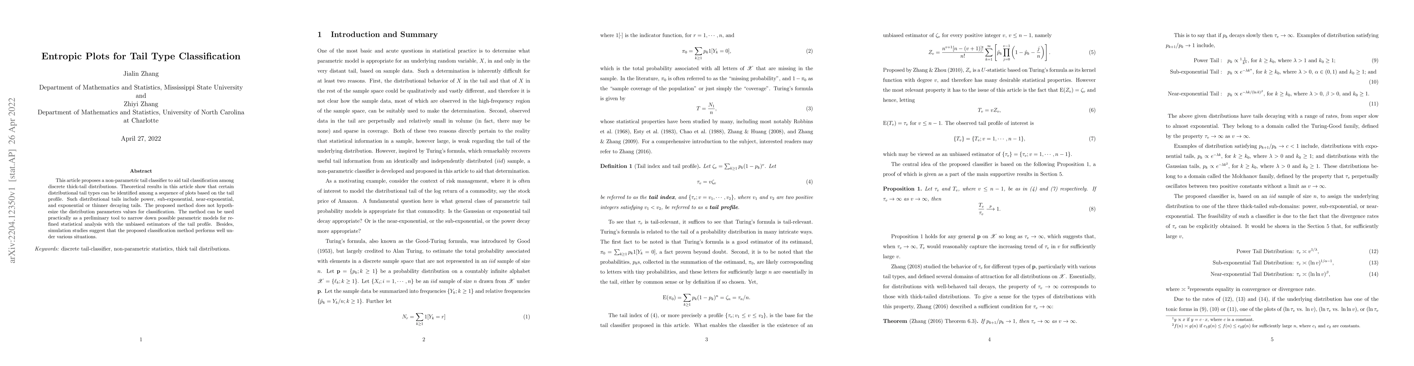 This paper proposes a non-parametric method to classify tail types in distributions using entropic plots, identifying power, sub-exponential, near-exponential, and exponential tails without requiring distribution parameters.