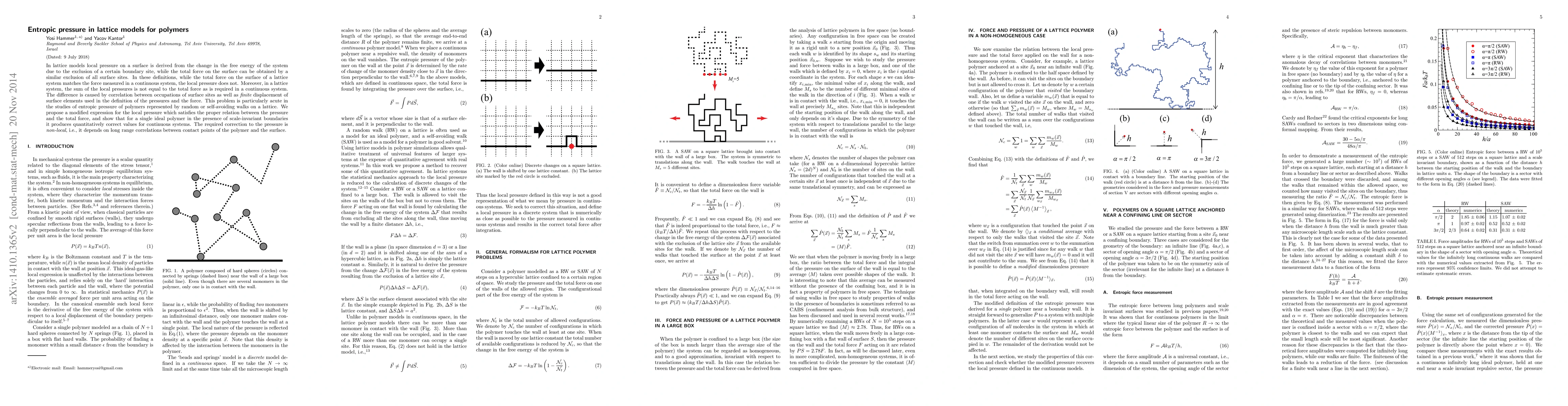 This paper investigates discrepancies in entropic pressure calculations in lattice models for polymers, proposing a modified expression for local pressure that aligns with the force-pressure relationship in continuous systems, emphasizing the importance of long-range correlations for accurate results.