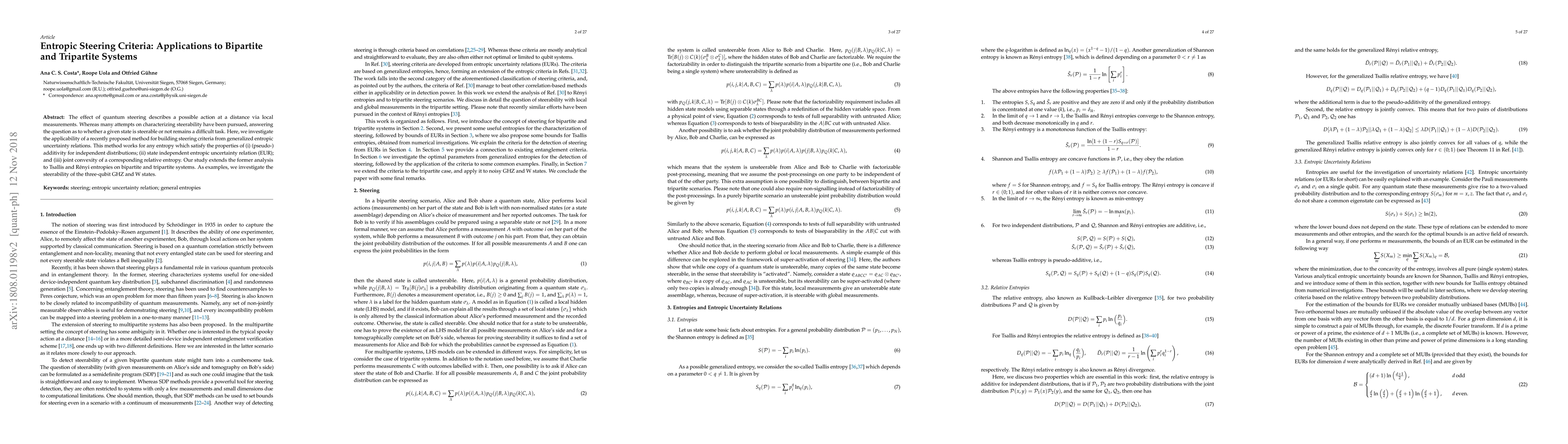 This paper explores the application of entropic steering criteria based on generalized entropic uncertainty relations to determine the steerability of quantum states in bipartite and tripartite systems. It extends the analysis to Tsallis and Rényi entropies and examines the steerability of specific three-qubit states, such as the GHZ and W states.
