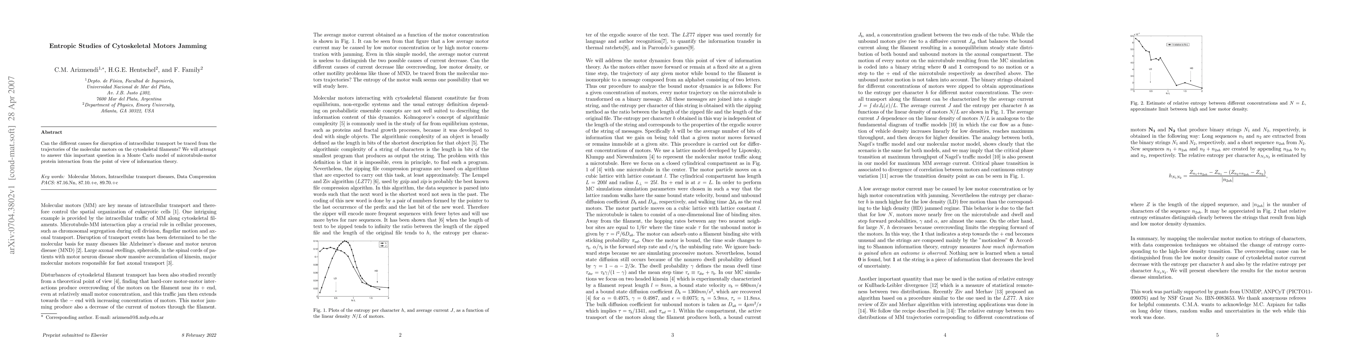 The paper introduces the use of algorithmic complexity and data compression techniques to study the entropy of cytoskeletal motor protein interactions, providing a novel perspective on intracellular transport disruptions.