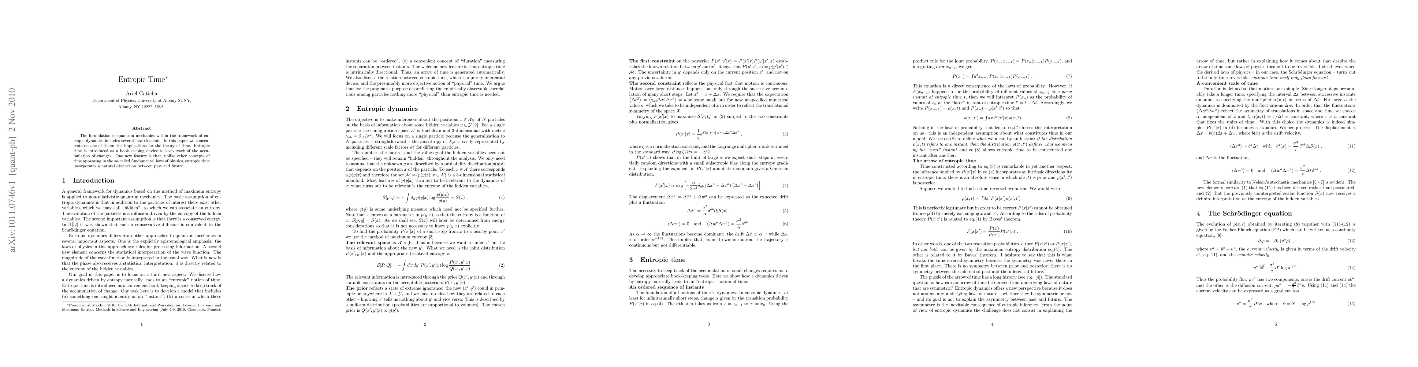 Two-line summary: This paper explores the concept of entropic time within the framework of entropic dynamics in quantum mechanics, introducing it as a means to track changes with a natural distinction between past and future, differing from traditional fundamental physics concepts of time.