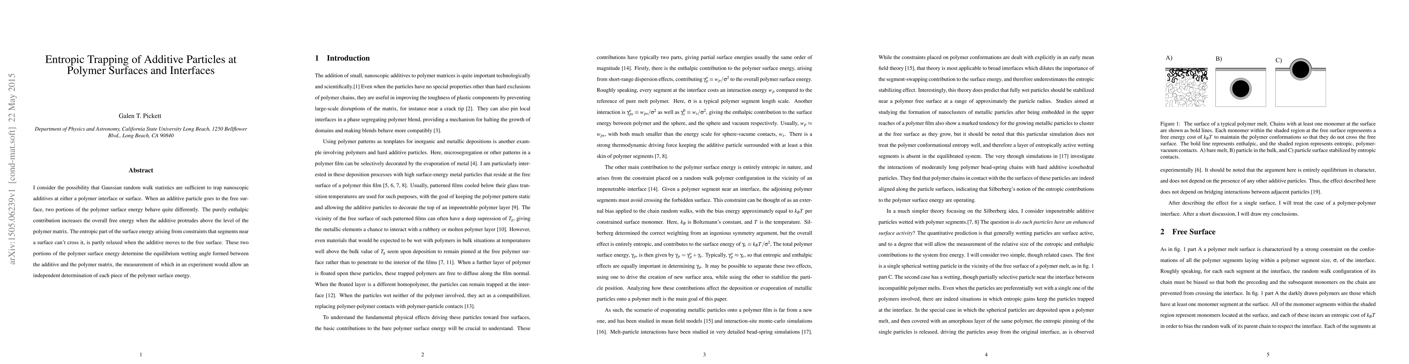 I consider the possibility that Gaussian random walk statistics are sufficient to trap nanoscopic additives at either a polymer interface or surface. When an additive particle goes to the free surface, two portions of the polymer surface energy behave quite differently. The purely enthalpic contribution increases the overall free energy when the additive protrudes above the level of the polymer matrix. The entropic part of the surface energy arising from constraints that segments near a surface can't cross it, is partly relaxed when the additive moves to the free surface. These two portions of the polymer surface energy determine the equilibrium wetting angle formed between the additive and the polymer matrix, the measurement of which in an experiment would allow an independent determination of each piece of the polymer surface energy.