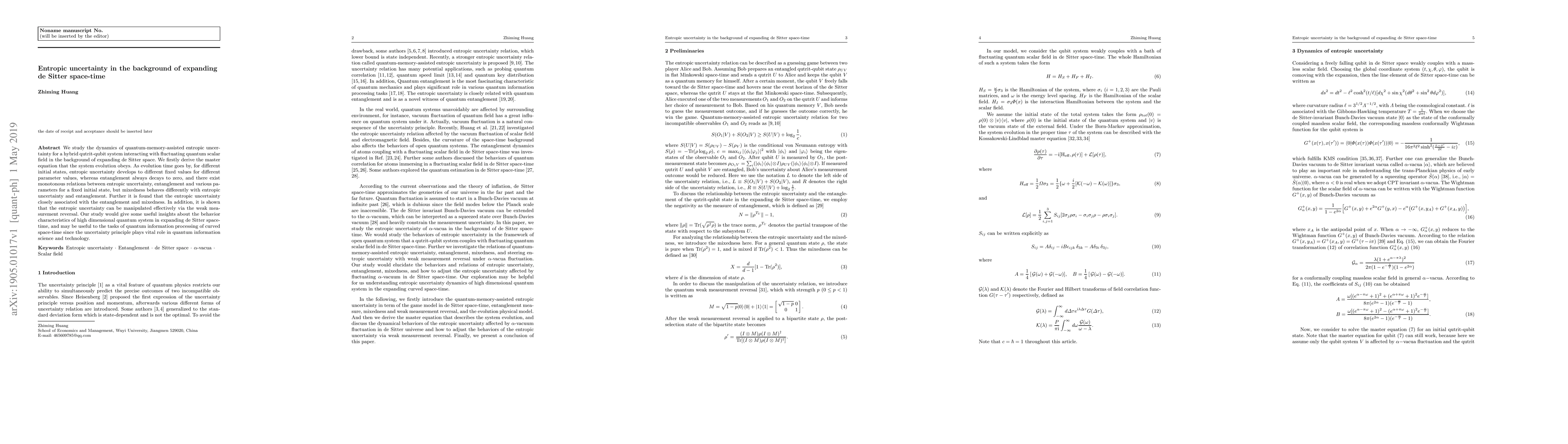 We study the dynamics of quantum-memory-assisted entropic uncertainty for a hybrid qutrit-qubit system interacting with fluctuating quantum scalar field in the background of expanding de Sitter space. We firstly derive the master equation that the system evolution obeys. As evolution time goes by, for different initial states, entropic uncertainty develops to different fixed values for different parameter values, whereas entanglement always decays to zero, and there exist monotonous relations between entropic uncertainty, entanglement and various parameters for a fixed initial state, but mixedness behaves differently with entropic uncertainty and entanglement. Further it is found that the entropic uncertainty closely associated with the entanglement and mixedness. In addition, it is shown that the entropic uncertainty can be manipulated effectively via the weak measurement reversal. Our study would give some useful insights about the behavior characteristics of high dimensional quantum system in expanding de Sitter space-time, and may be useful to the tasks of quantum information processing of curved space-time since the uncertainty principle plays vital role in quantum information science and technology.