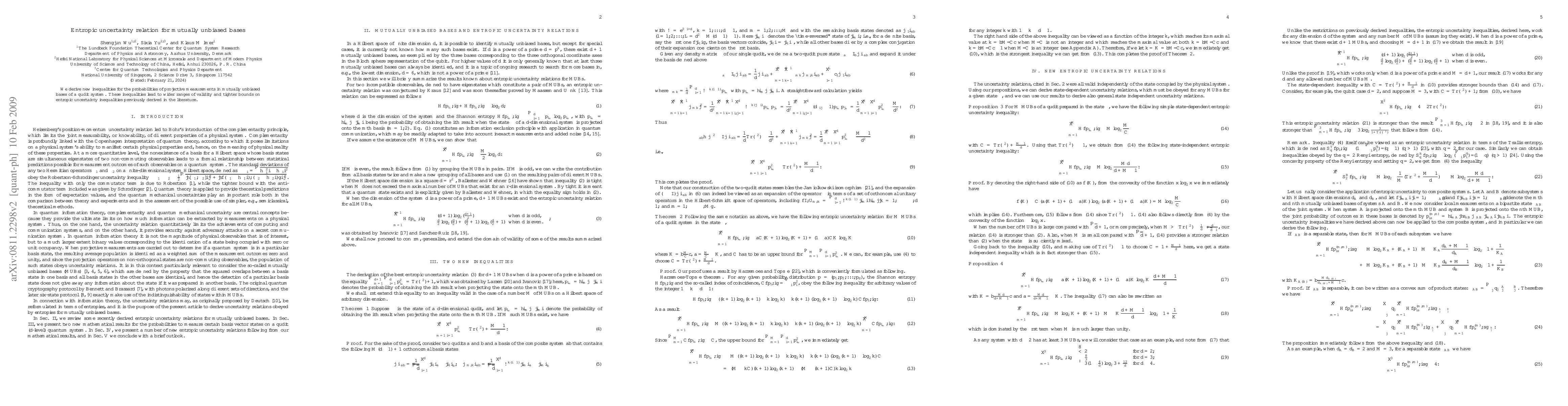 Summary: This paper establishes new inequalities for projective measurements in mutually unbiased bases of a qudit system, resulting in broader applicability and tighter bounds on previously known entropic uncertainty relations.