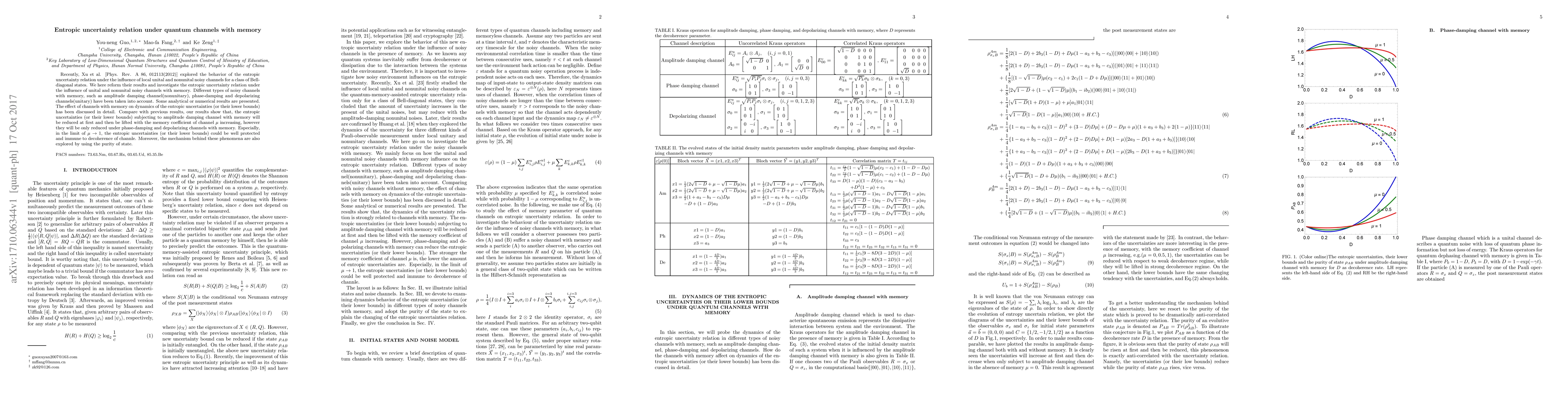 This paper reformulates and extends previous research on entropic uncertainty relations under noisy quantum channels, focusing on channels with memory. It investigates how different types of memory channels affect entropic uncertainties, finding that amplitude damping channels reduce uncertainties initially but increase them with higher memory, while phase-damping and depolarizing channels consistently reduce uncertainties, with perfect protection in the limit of maximum memory.