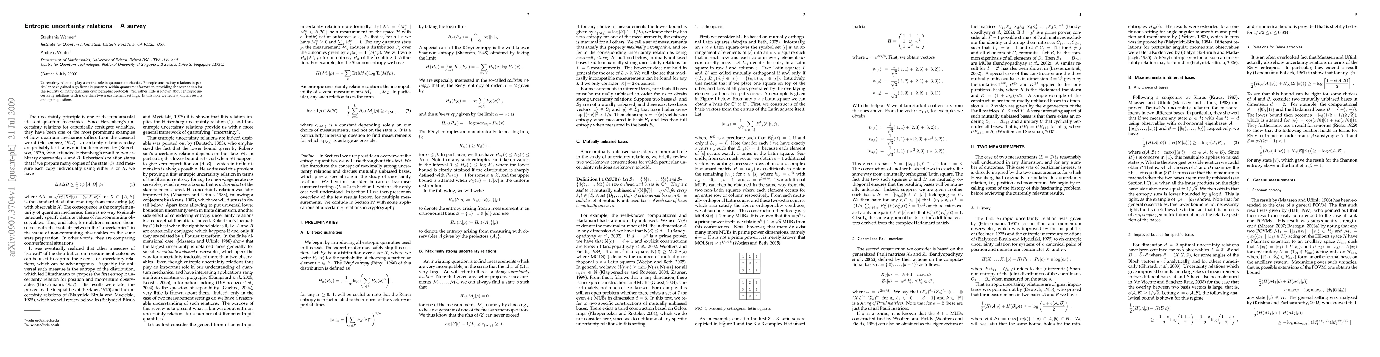 Uncertainty relations play a central role in quantum mechanics. Entropic uncertainty relations in particular have gained significant importance within quantum information, providing the foundation for the security of many quantum cryptographic protocols. Yet, rather little is known about entropic uncertainty relations with more than two measurement settings. In this note we review known results and open questions.