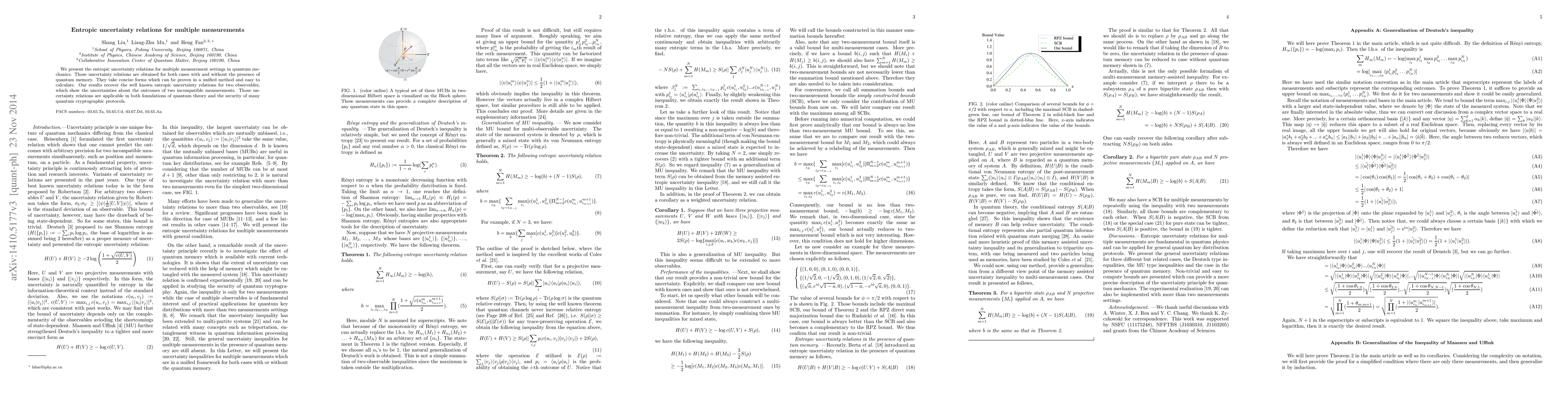 This paper develops entropic uncertainty relations for multiple quantum measurements, both with and without quantum memory, providing a unified and straightforward method for calculation. These relations extend the well-known entropic uncertainty for two observables and are relevant for foundational quantum theory and quantum cryptography security.