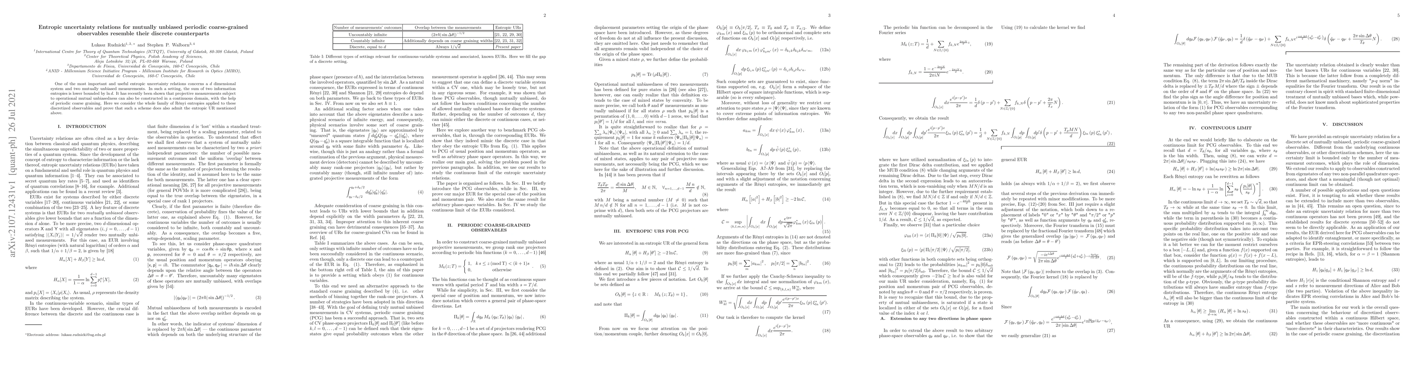 This paper demonstrates that entropic uncertainty relations for continuous, periodically coarse-grained observables, which are mutually unbiased, maintain the same lower bound as their discrete counterparts, specifically $\ln d$. It extends the uncertainty principle to a continuous domain using periodic coarse graining.