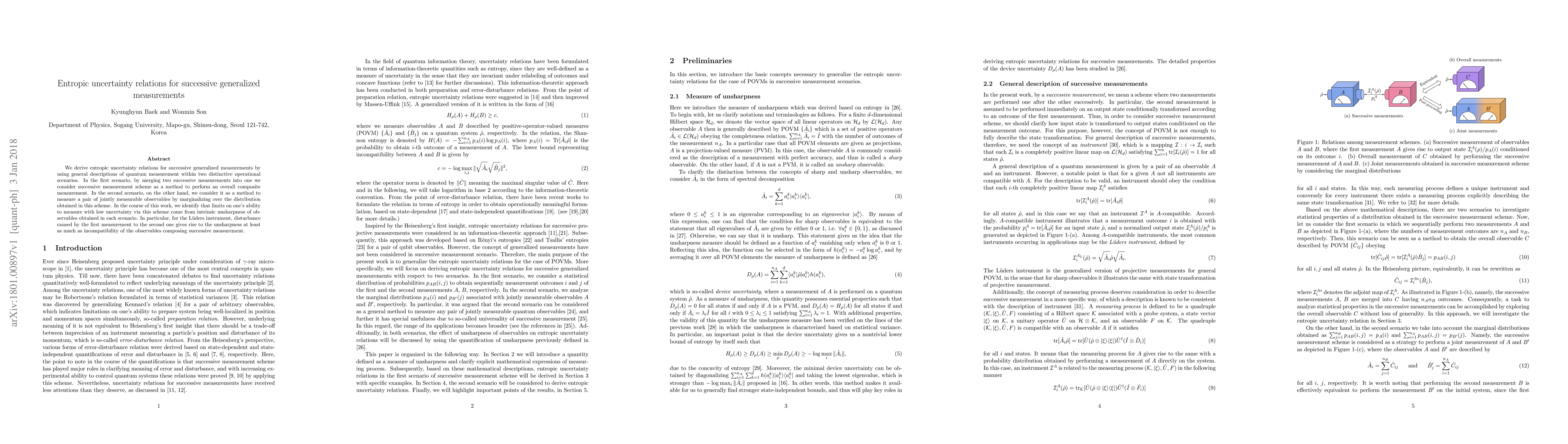 This paper derives entropic uncertainty relations for successive generalized measurements in two distinct operational scenarios, highlighting that measurement limits arise from intrinsic unsharpness and disturbance effects, particularly for L\"{u}ders instruments.