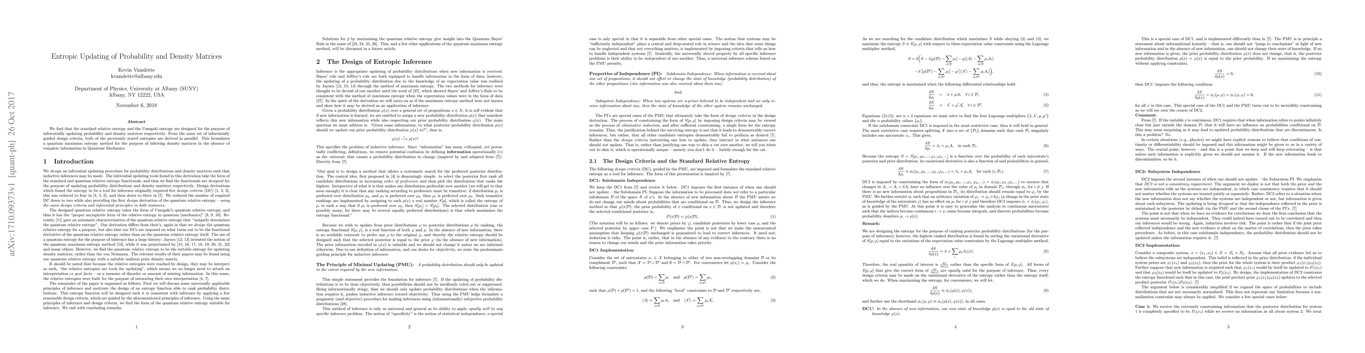 This paper derives the standard relative entropy and Umegaki entropy from a set of inferential criteria to update probability and density matrices, respectively, and proposes a quantum maximum entropy method for inferring density matrices when complete information is unavailable.