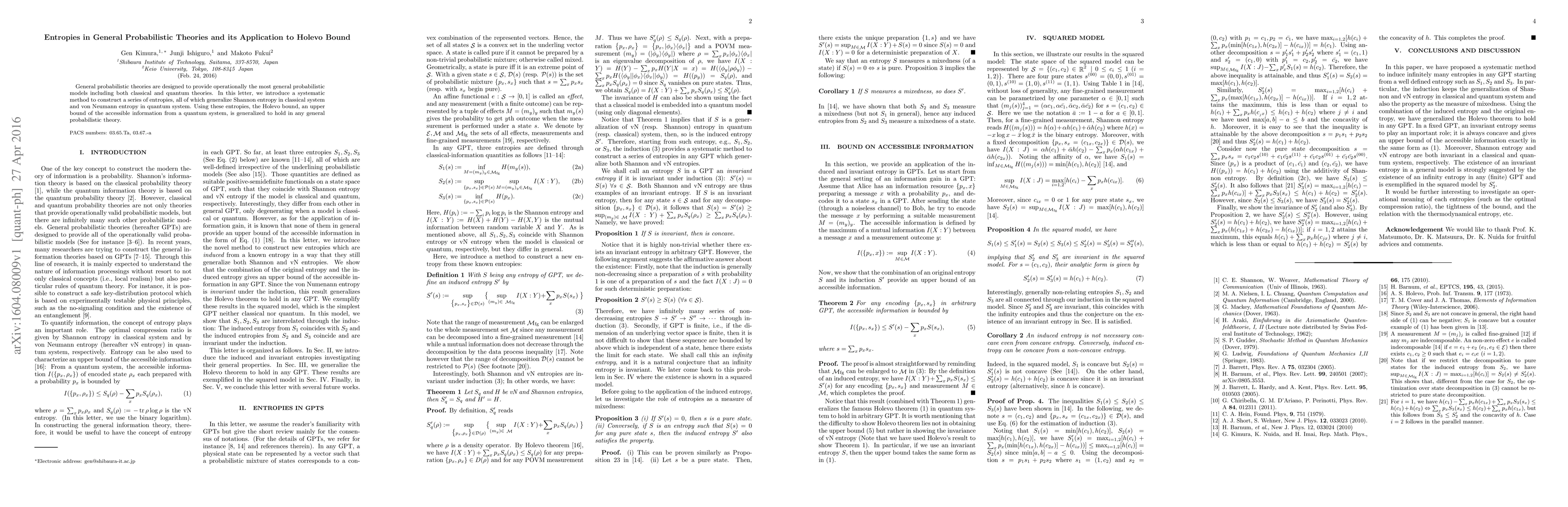 This paper introduces a method to construct generalized entropies for general probabilistic theories, extending Shannon and von Neumann entropies. It also generalizes the Holevo bound to apply universally across these theories, providing a universal upper limit on accessible information.