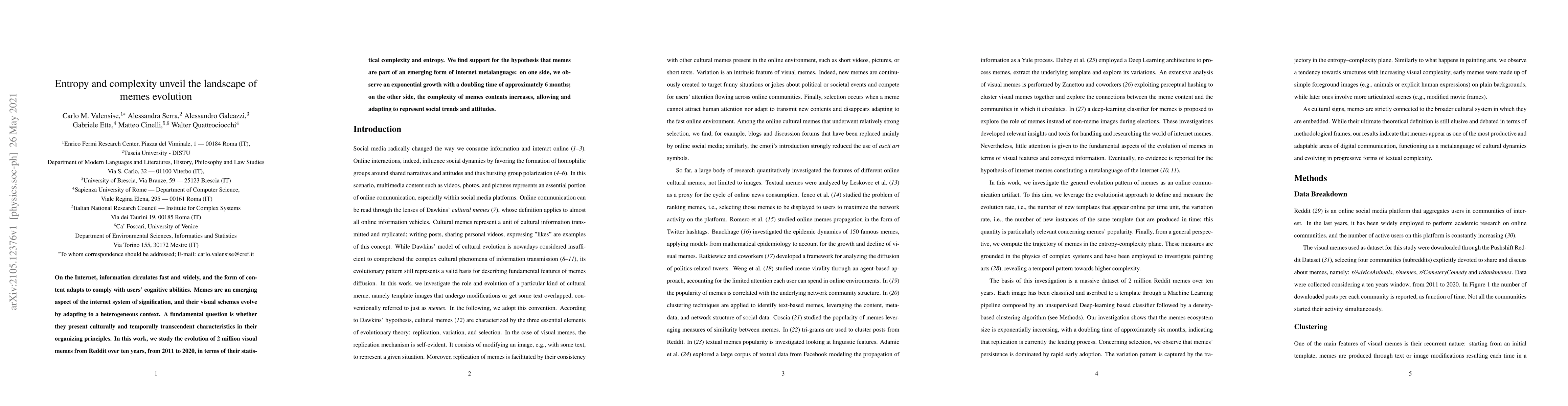This study examines 2 million Reddit memes from 2011-2020, finding that meme complexity and entropy increase exponentially every 6 months, suggesting memes evolve into an 'internet metalanguage' representing social trends and attitudes.