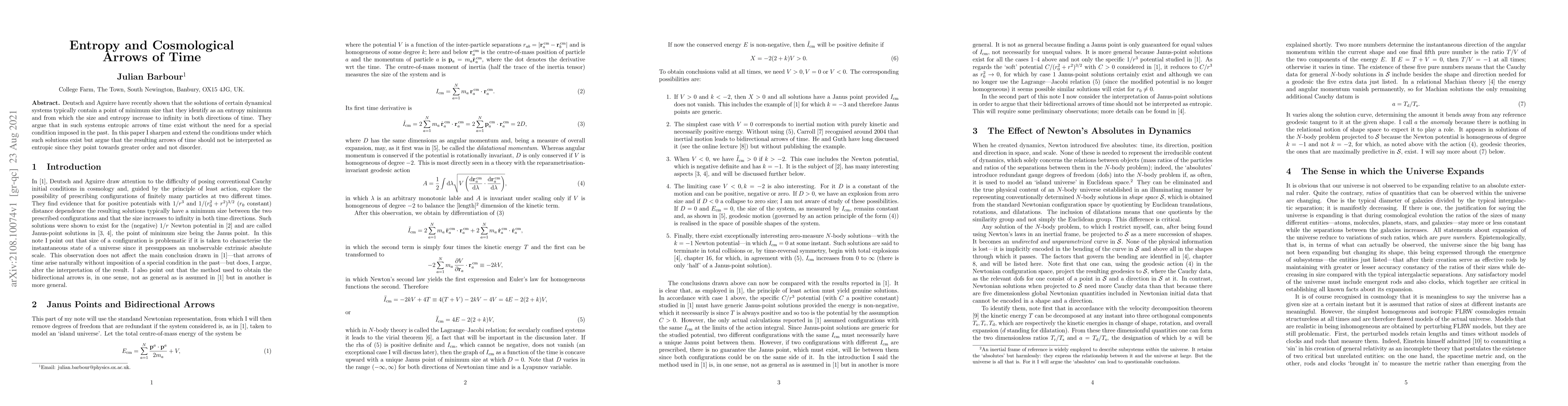 Deutsch and Aguirre have recently shown that the solutions of certain dynamical systems typically contain a point of minimum size that they identify as an entropy minimum and from which the size and entropy increase to infinity in both directions of time. They argue that in such systems entropic arrows of time exist without the need for a special condition imposed in the past. In this paper I sharpen and extend the conditions under which such solutions exist but argue that the resulting arrows of time should not be interpreted as entropic since they point towards greater order and not disorder.