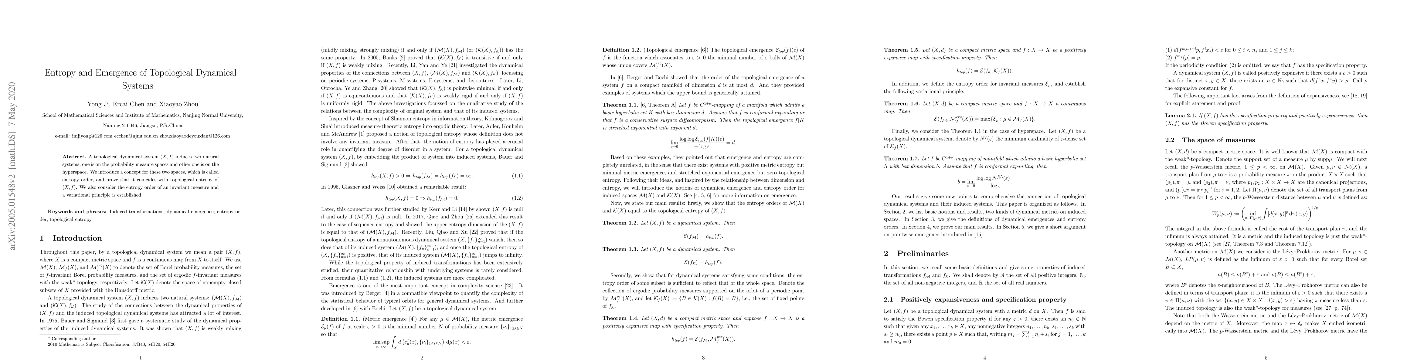A topological dynamical system $(X,f)$ induces two natural systems, one is on the probability measure spaces and other one is on the hyperspace. We introduce a concept for these two spaces, which is called entropy order, and prove that it coincides with topological entropy of $(X,f)$. We also consider the entropy order of an invariant measure and a variational principle is established.