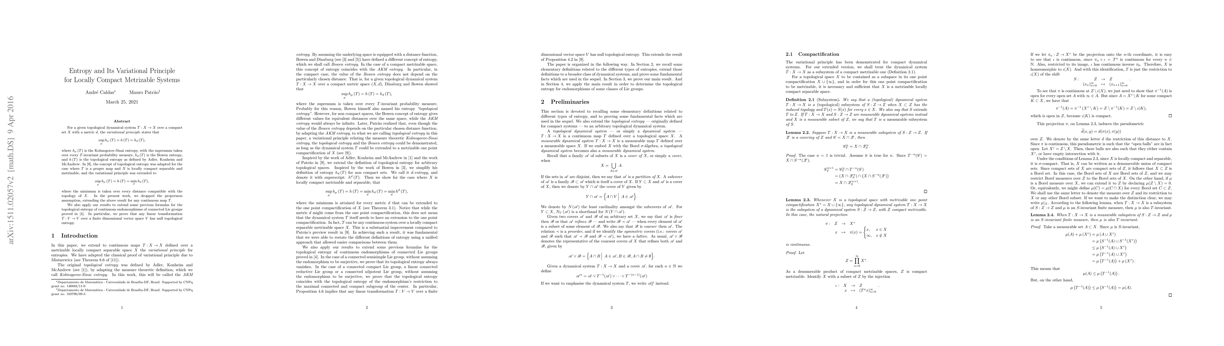 This paper extends the variational principle for the topological entropy of dynamical systems to locally compact metrizable spaces, removing the properness assumption for continuous maps. It also applies these results to show that linear transformations on finite-dimensional vector spaces have null topological entropy.