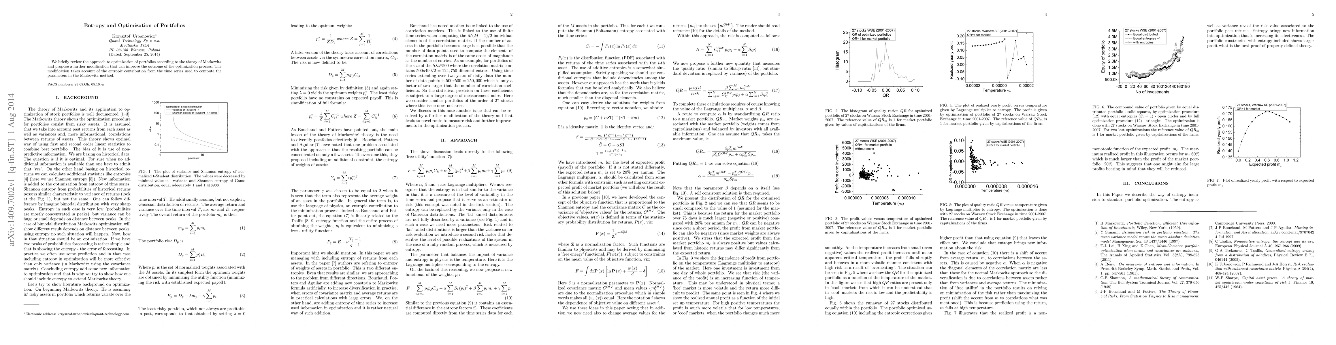 We briefly review the approach to optimization of portfolios according to the theory of Markowitz and propose a further modification that can improve the outcome of the optimization process. The modification takes account of the entropic contribution from the time series used to compute the parameters in the Markowitz method.