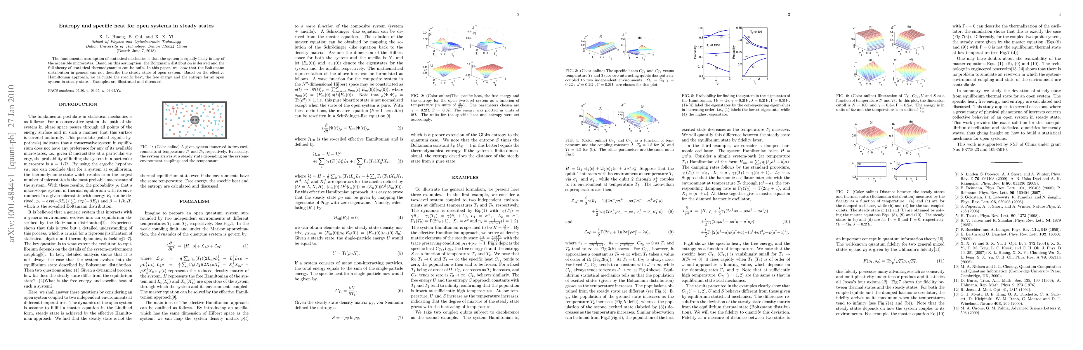 The fundamental assumption of statistical mechanics is that the system is equally likely in any of the accessible microstates. Based on this assumption, the Boltzmann distribution is derived and the full theory of statistical thermodynamics can be built. In this paper, we show that the Boltzmann distribution in general can not describe the steady state of open system. Based on the effective Hamiltonian approach, we calculate the specific heat, the free energy and the entropy for an open system in steady states. Examples are illustrated and discussed.