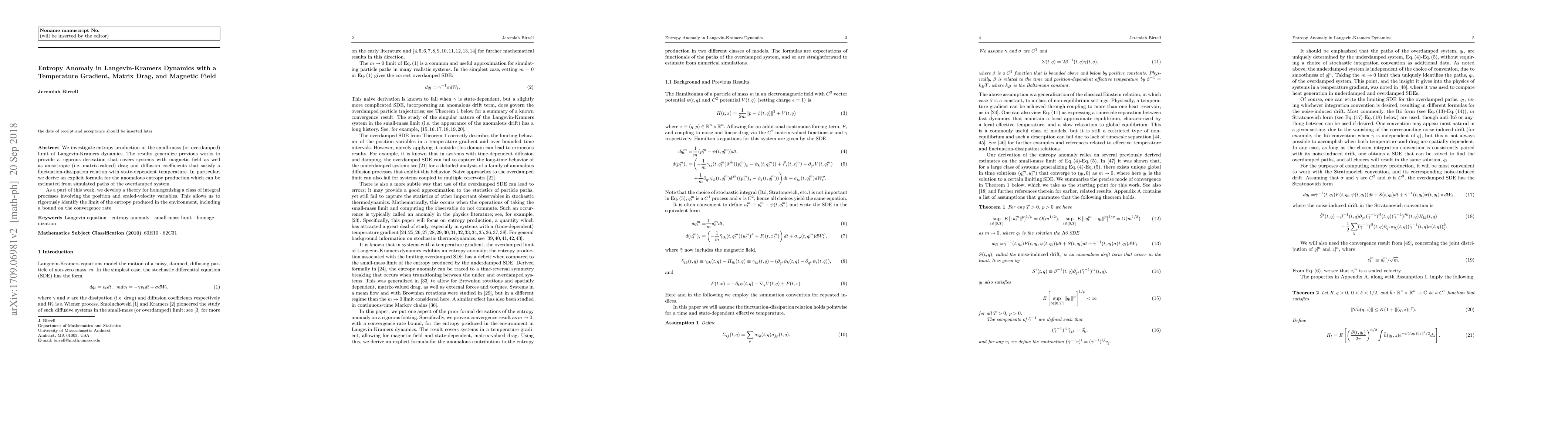 This paper rigorously derives an explicit formula for anomalous entropy production in overdamped Langevin-Kramers dynamics under temperature gradients, matrix drag, and magnetic fields. It also develops a theory for homogenizing integral processes to identify the limit of entropy production in the environment.