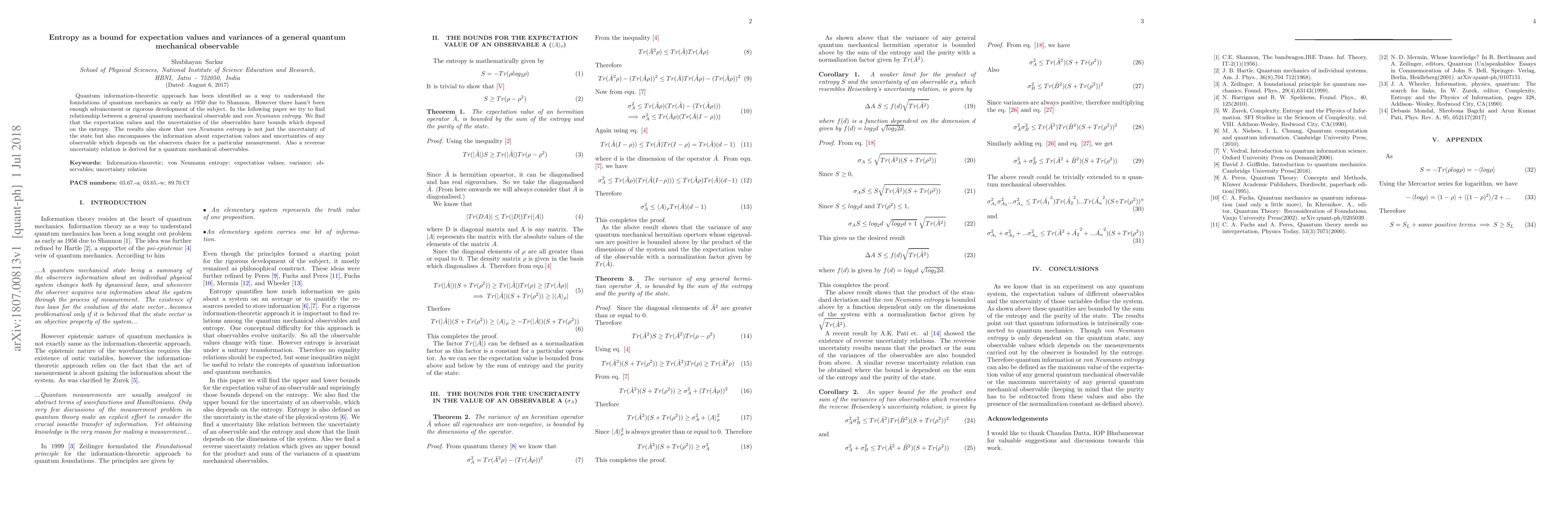 Quantum information-theoretic approach has been identified as a way to understand the foundations of quantum mechanics as early as 1950 due to Shannon. However there hasn't been enough advancement or rigorous development of the subject. In the following paper we try to find relationship between a general quantum mechanical observable and it von Neumann entropy. We find that the expectation values and the uncertainties of the observables have bounds which depend on the entropy. The results also show that von Neumann entropy is not just the uncertainty of the state but also encompasses the information about expectation values and uncertainties of any observable which depends on the observers choice for a particular measurement. Also a reverse uncertainty relation is derived for n quantum mechanical observables.