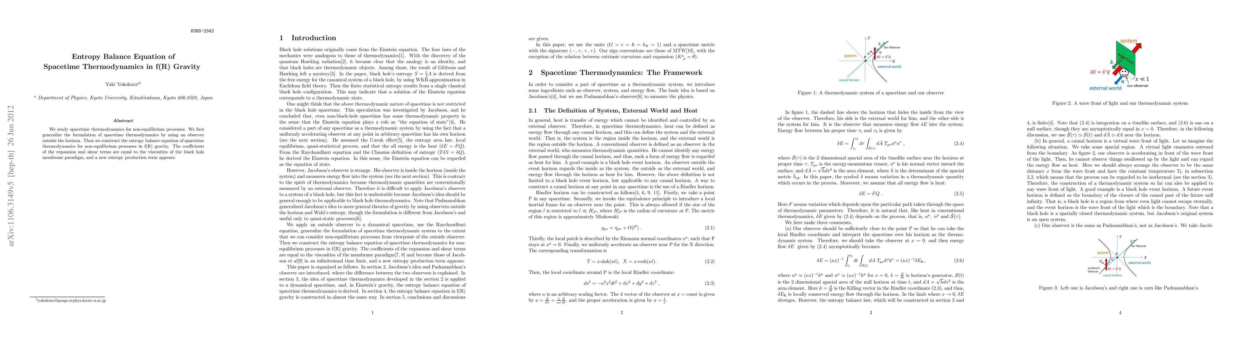 This paper generalizes spacetime thermodynamics for non-equilibrium processes in f(R) gravity, deriving an entropy balance equation where expansion and shear terms correspond to black hole membrane viscosities, and introduces a novel entropy production term.