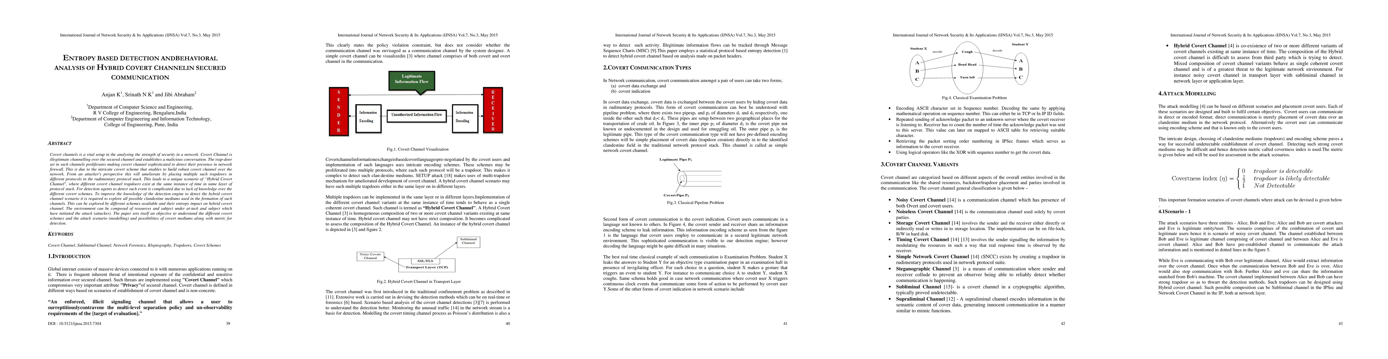 This paper explores the detection and behavioral analysis of hybrid covert channels using entropy-based methods. It aims to model different covert schemes and their impact on network security, proposing metrics to identify and analyze these sophisticated channels.