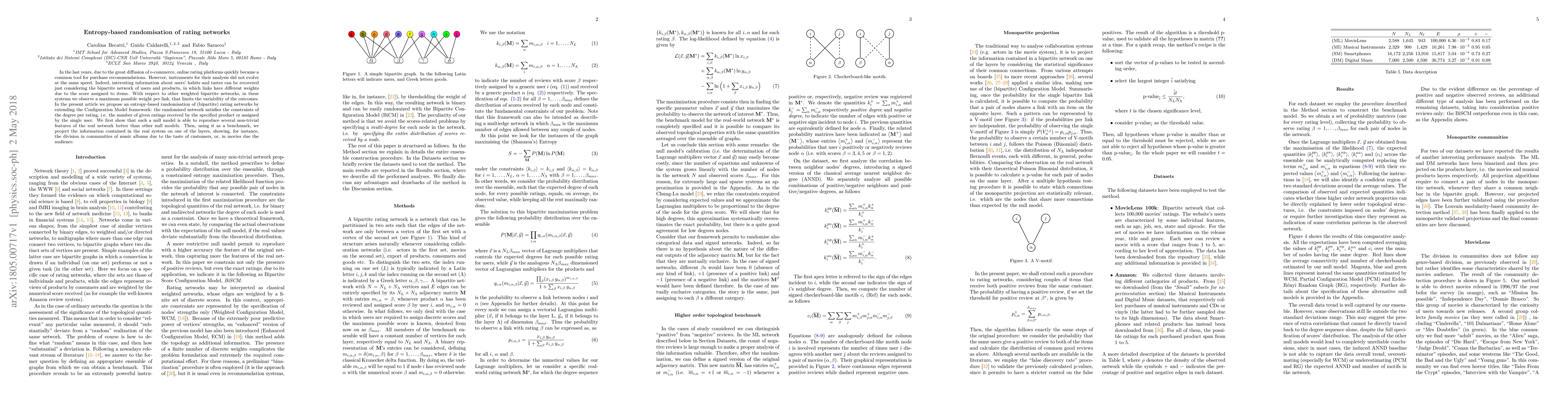 In the last years, due to the great diffusion of e-commerce, online rating platforms quickly became a common tool for purchase recommendations. However, instruments for their analysis did not evolve at the same speed. Indeed, interesting information about users' habits and tastes can be recovered just considering the bipartite network of users and products, in which links have different weights due to the score assigned to items. With respect to other weighted bipartite networks, in these systems we observe a maximum possible weight per link, that limits the variability of the outcomes. In the present article we propose an entropy-based randomisation of (bipartite) rating networks by extending the Configuration Model framework: the randomised network satisfies the constraints of the degree per rating, i.e. the number of given ratings received by the specified product or assigned by the single user. We first show that such a null model is able to reproduce several non-trivial features of the real network better than other null models. Then, using it as a benchmark, we project the information contained in the real system on one of the layers, showing, for instance, the division in communities of music albums due to the taste of customers, or, in movies due the audience.