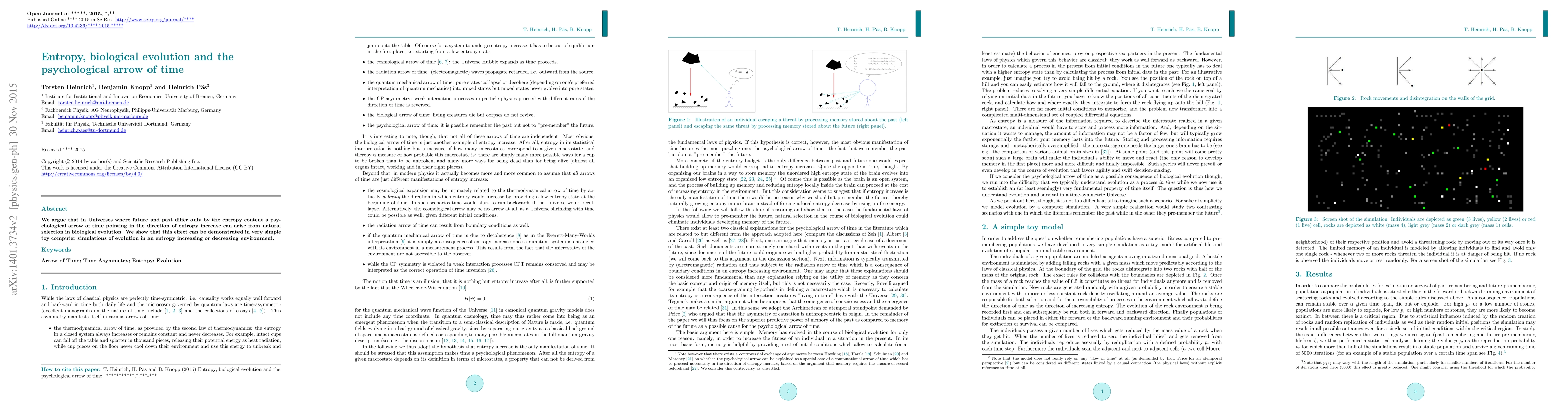 This paper posits that in universes with differing entropy content between future and past, natural selection during biological evolution can create a psychological arrow of time aligned with entropy increase. Simple computer simulations of evolutionary processes in environments with varying entropy support this phenomenon.