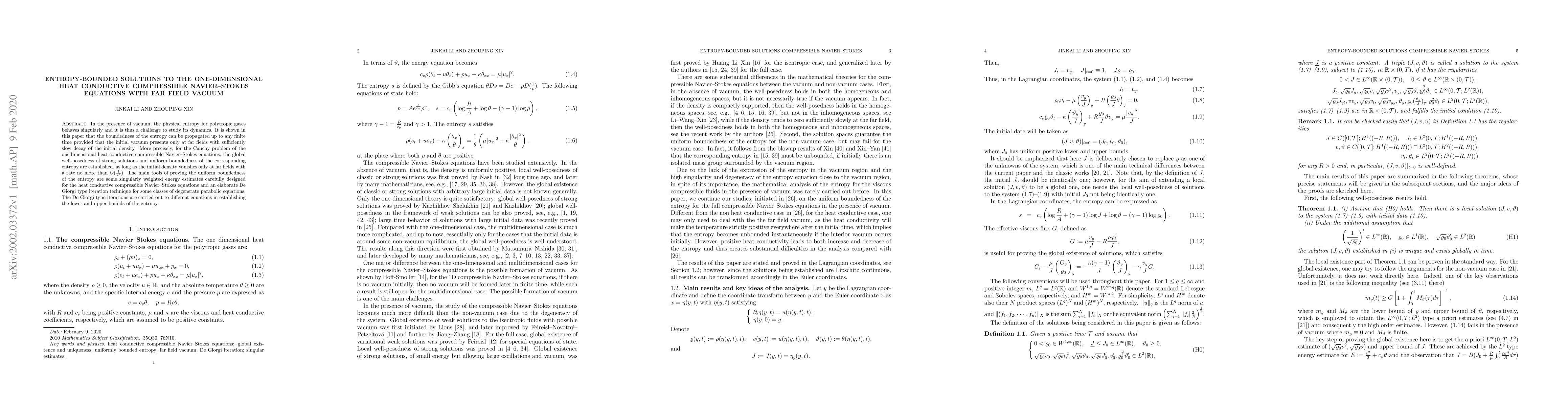 This paper establishes global well-posedness and uniform boundedness of entropy for one-dimensional heat conductive compressible Navier-Stokes equations with vacuum far fields. The key techniques involve specially designed weighted energy estimates and De Giorgi type iteration methods to handle the singular behavior of entropy in vacuum conditions.