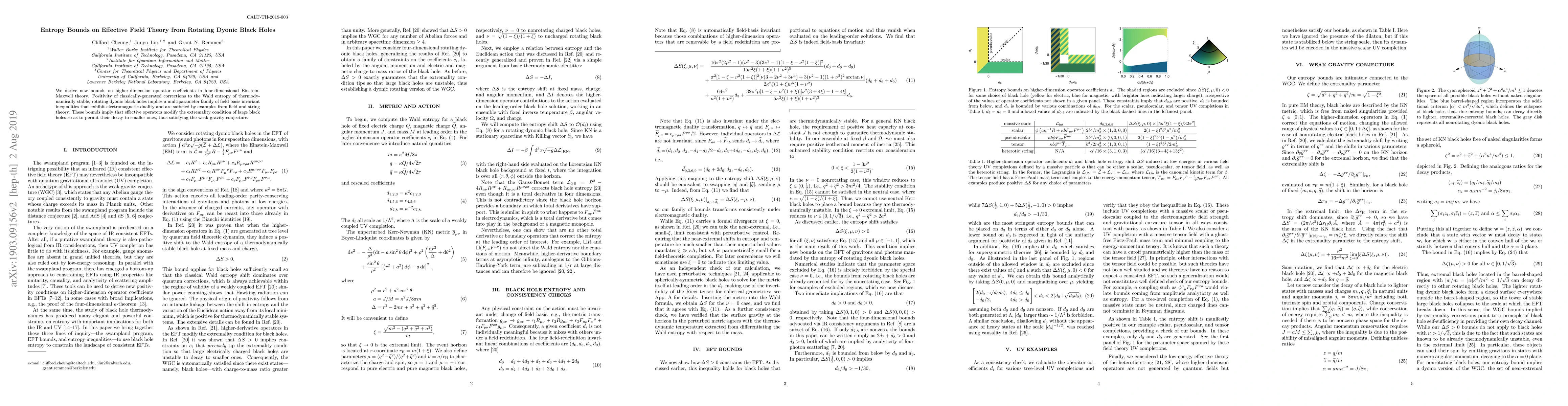 We derive new bounds on higher-dimension operator coefficients in four-dimensional Einstein-Maxwell theory. Positivity of classically-generated corrections to the Wald entropy of thermodynamically stable, rotating dyonic black holes implies a multiparameter family of field basis invariant inequalities that exhibit electromagnetic duality and are satisfied by examples from field and string theory. These bounds imply that effective operators modify the extremality condition of large black holes so as to permit their decay to smaller ones, thus satisfying the weak gravity conjecture.