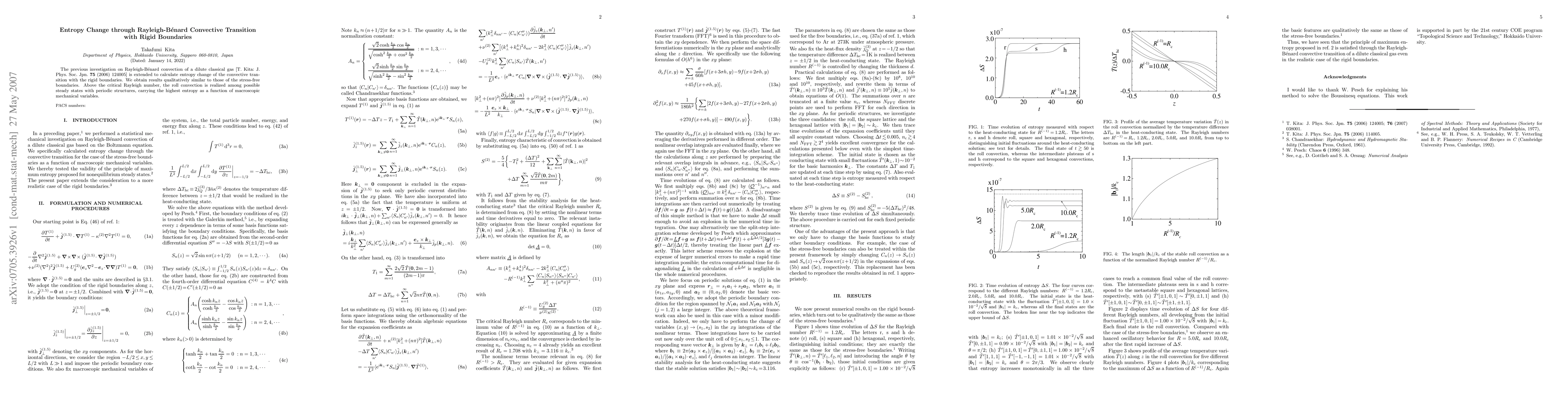 The previous investigation on Rayleigh-B\'enard convection of a dilute classical gas [T. Kita: J. Phys. Soc. Jpn. {\bf 75} (2006) 124005] is extended to calculate entropy change of the convective transition with the rigid boundaries. We obtain results qualitatively similar to those of the stress-free boundaries. Above the critical Rayleigh number, the roll convection is realized among possible steady states with periodic structures, carrying the highest entropy as a function of macroscopic mechanical variables.