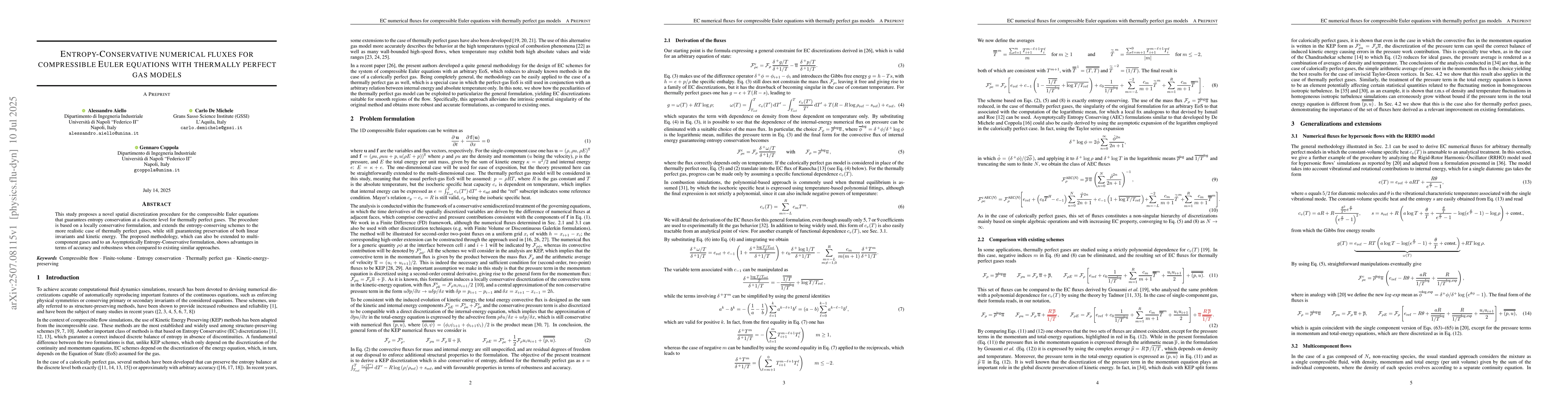 This study proposes a novel spatial discretization procedure for the compressible Euler equations that guarantees entropy conservation at a discrete level for thermally perfect gases. The procedure is based on a locally conservative formulation, and extends the entropy-conserving schemes to the more realistic case of thermally perfect gases, while still guaranteeing preservation of both linear invariants and kinetic energy. The proposed methodology, which can also be extended to multicomponent gases and to an Asymptotically Entropy-Conservative formulation, shows advantages in terms of accuracy and robustness when compared to existing similar approaches.