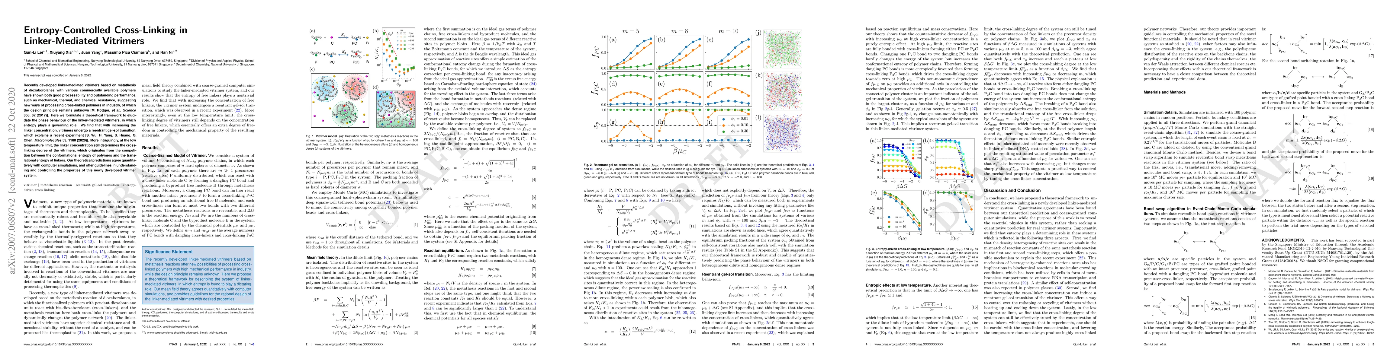 This work reveals the determining role of entropy in linker-mediated vitrimers, offering a new perspective on controlling their properties and providing a foundation for understanding and designing novel functional materials.