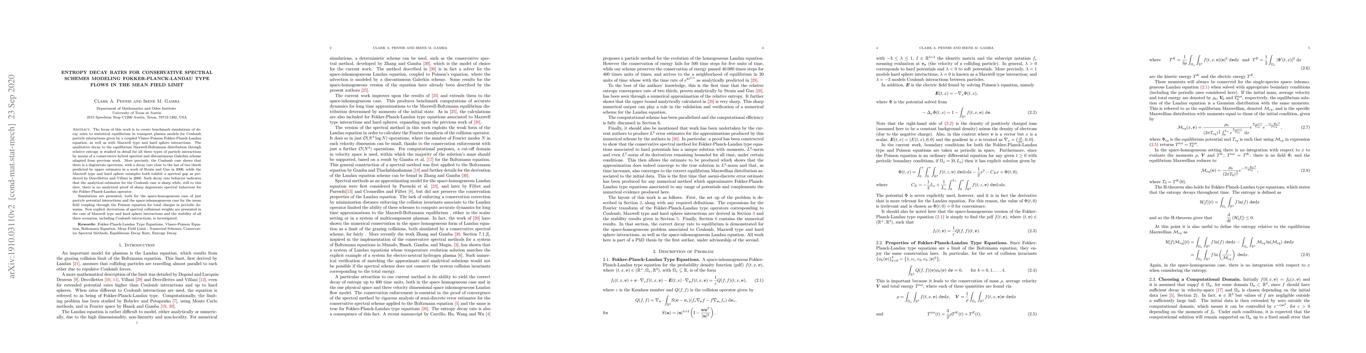 The focus of this work is to create benchmark simulations of decay rates to statistical equilibrium in transport plasma models for Coulomb particle interactions given by a coupled Vlasov-Poisson Fokker-Planck-Landau equation, as well as with Maxwell type and hard sphere interactions. The qualitative decay to the equilibrium Maxwell-Boltzmann distribution through relative entropy is studied in detail for all three types of particle interactions by means of a conservative hybrid spectral and discontinuous Galerkin scheme adapted from previous work. More precisely, the Coulomb case shows that there is a degenerate spectrum, with a decay rate close to the law of two thirds predicted by upper estimates in a work of Strain and Guo in 2006, while the Maxwell type and hard sphere examples both exhibit a spectral gap as predicted by Desvillettes and Villani in 2000. Such decay rate behavior indicates that the analytical estimates for the Coulomb case is sharp while, still to this date, there is no analytical proof of sharp degenerate spectral behaviour for the Fokker-Planck-Landau operator. Simulations are presented, both for the space-homogeneous case of just particle potential interactions and the space-inhomogeneous case for the mean field coupling through the Poisson equation for total charges in periodic domains. New explicit derivations of spectral collisional weights are presented in the case of Maxwell type and hard sphere interactions and the stability of all three scenarios, including Coulomb interactions, is investigated.