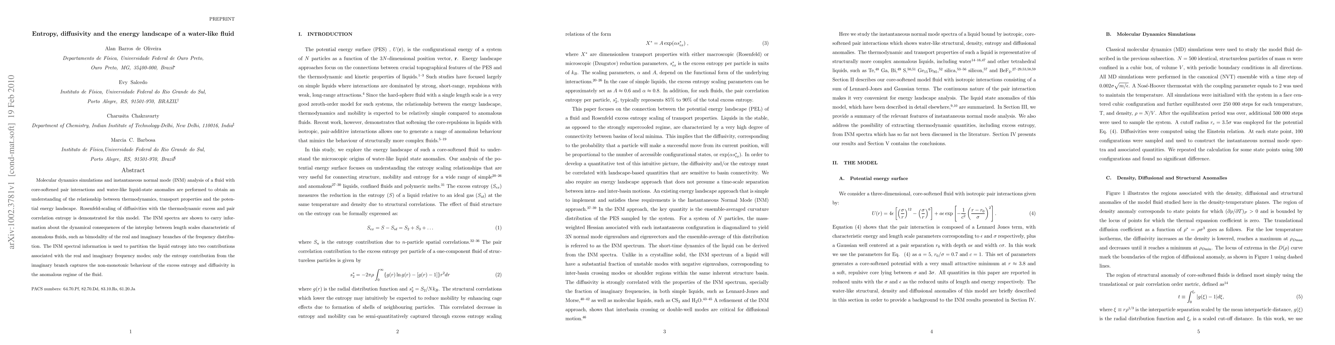This study uses molecular dynamics simulations and INM analysis to explore the relationship between thermodynamics, transport properties, and the potential energy landscape of a water-like fluid. It finds that the entropy contribution from the imaginary frequency modes correlates with the non-monotonic behavior of excess entropy and diffusivity in the anomalous regime.